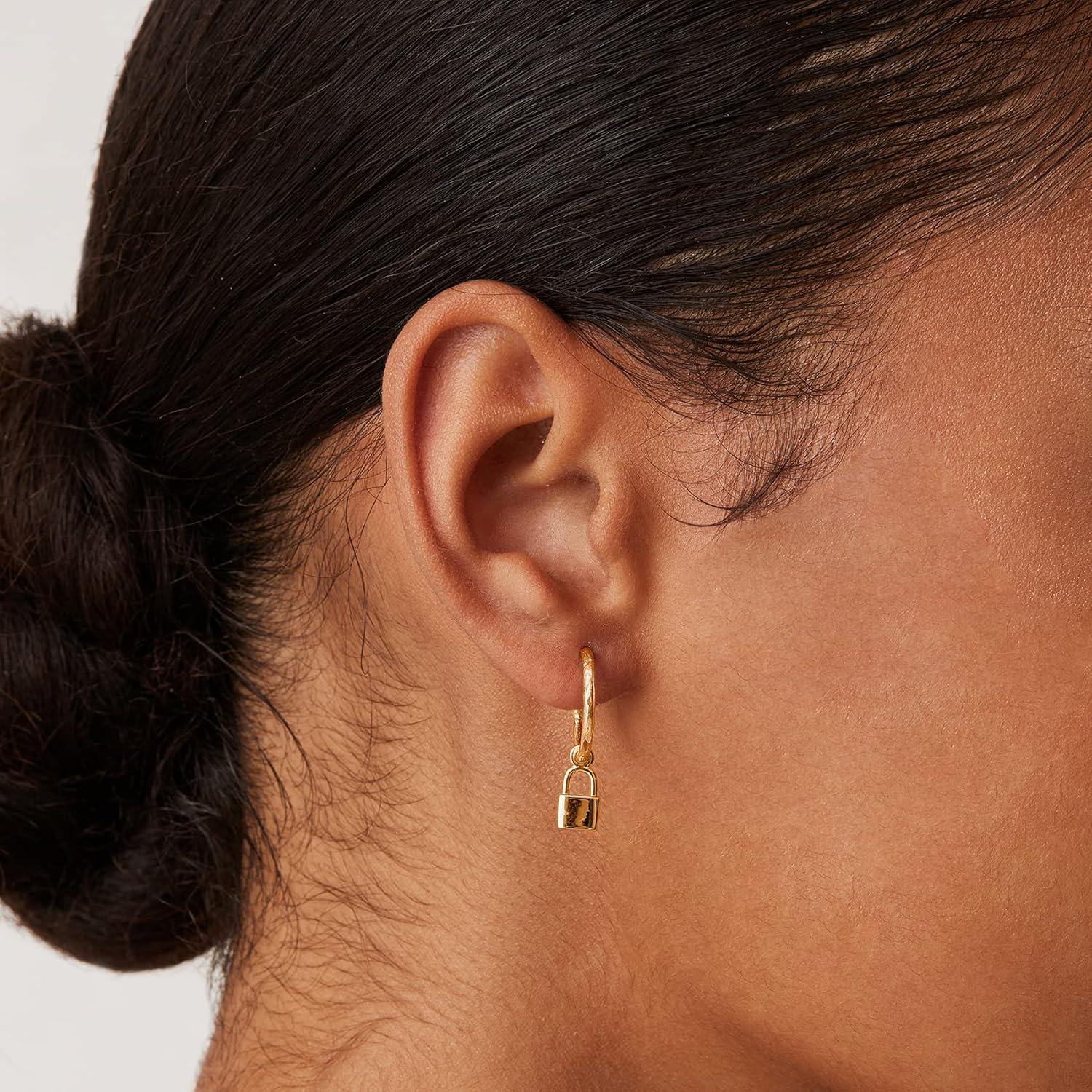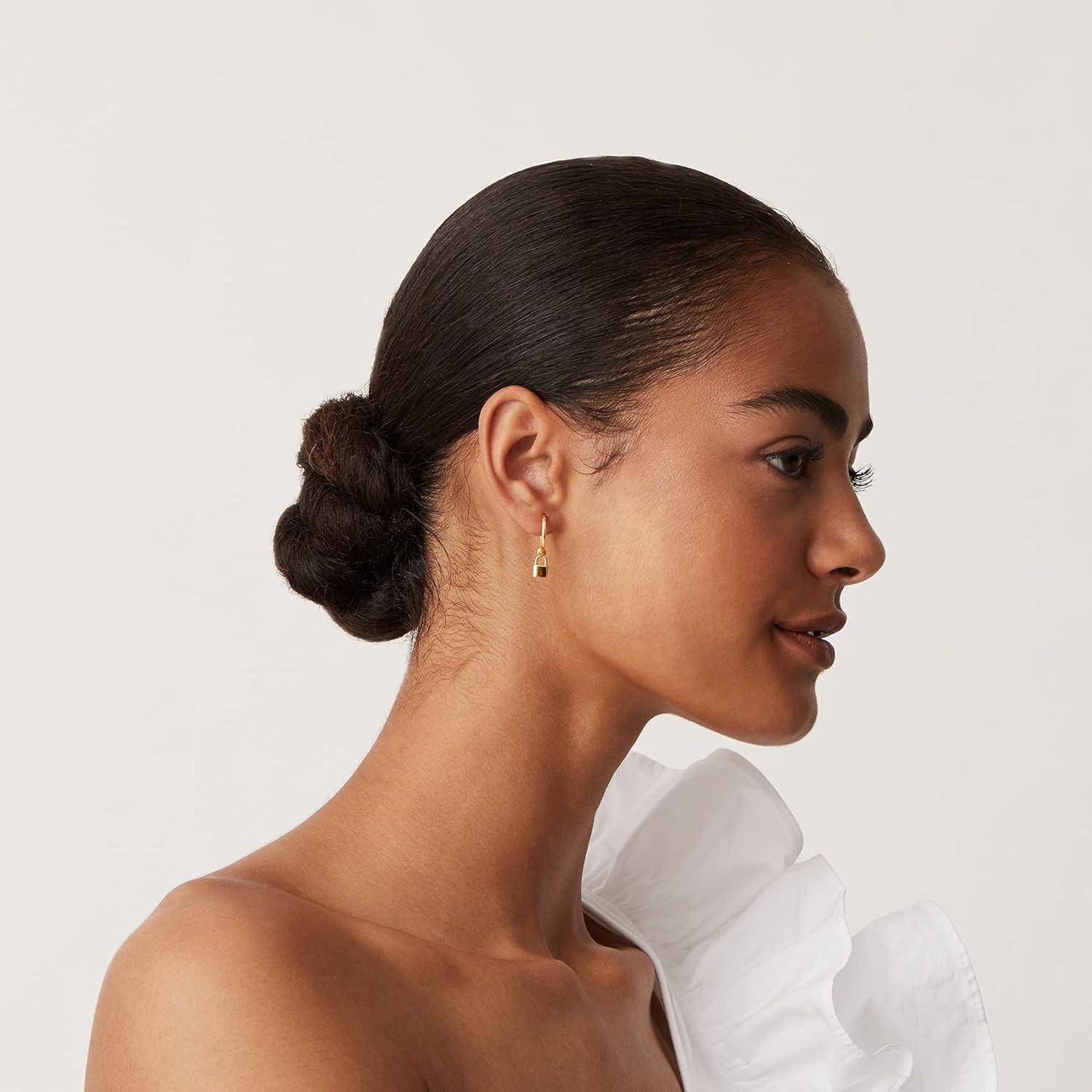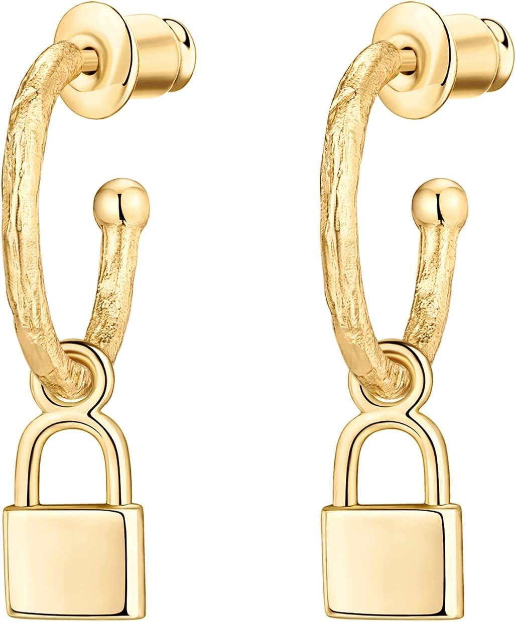PAVOI 14K Gold Plated S925 Sterling Silver Post Lightweight Drop Dangle Huggie Hoop Earrings for Women | Star, Lock, Pearl, Cross, Lightening, Coin | Dainty Earrings(Yellow Gold)