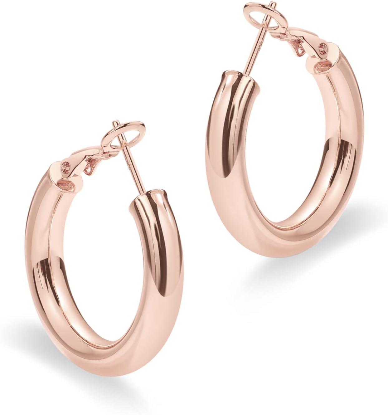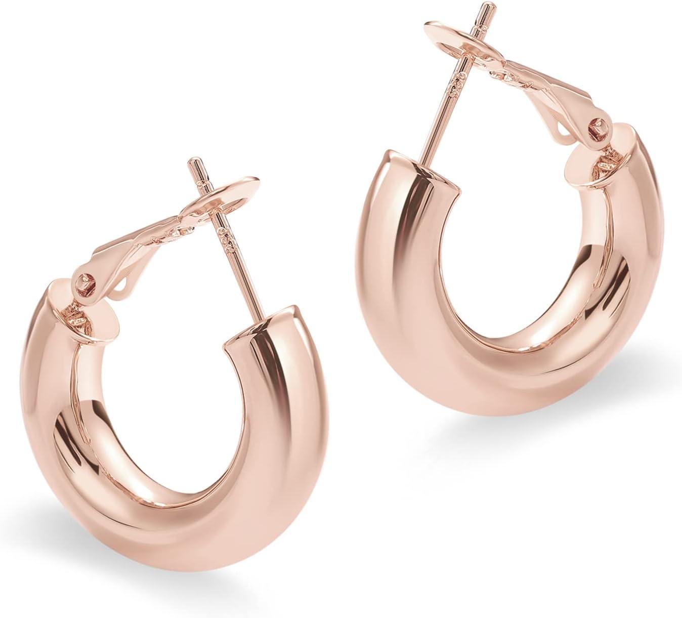 PAVOI 14K Gold Plated 925 Sterling Silver Post Huggie Earrings | Gold Dome Huggie Hoop Earrings for Women(Rose Gold)