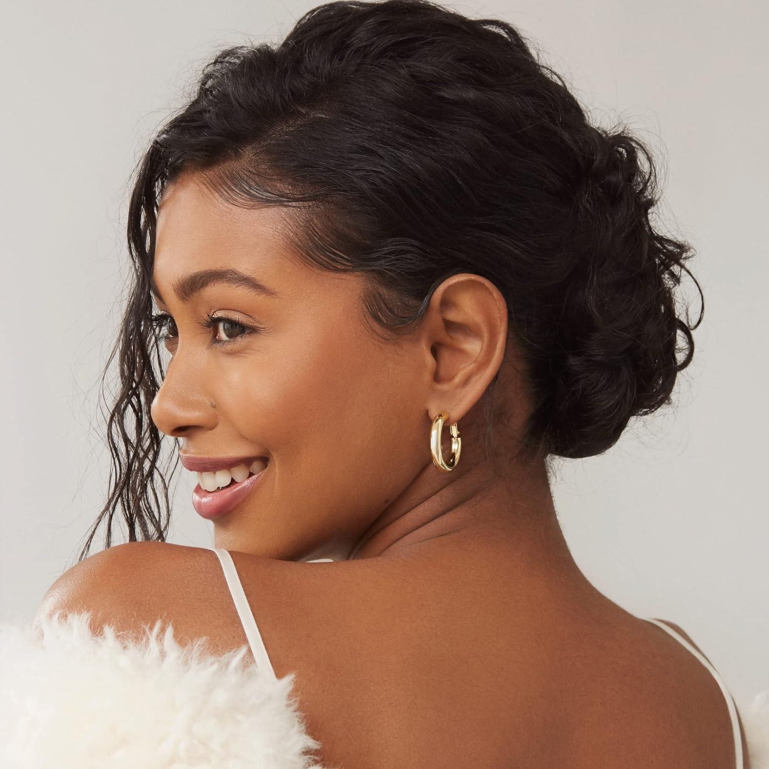 PAVOI 14K Gold Plated 925 Sterling Silver Post Hoops | Lightweight Chunky Hoops Huggies | Thick Gold Hoop Earrings for Women(20.0 Millimeters)