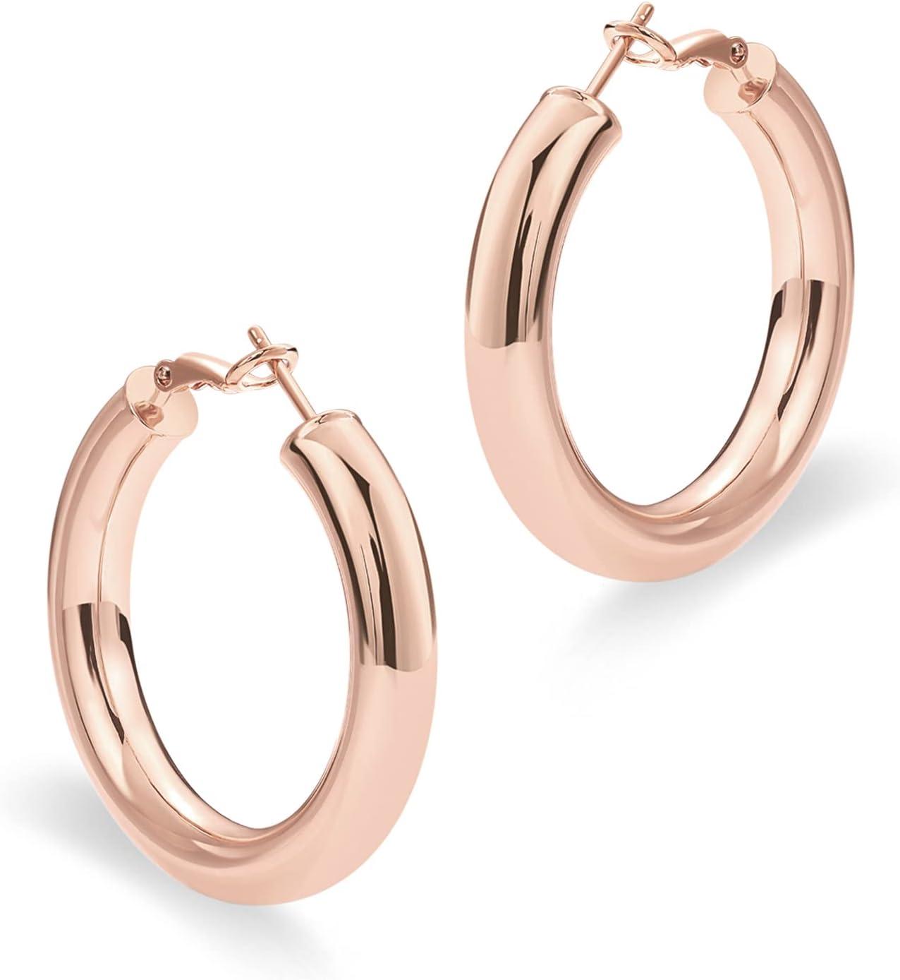 PAVOI 14K Gold Plated 925 Sterling Silver Post Hoops | Lightweight Chunky Hoops Huggies | Thick Gold Hoop Earrings for Women(40.0 Millimeters)