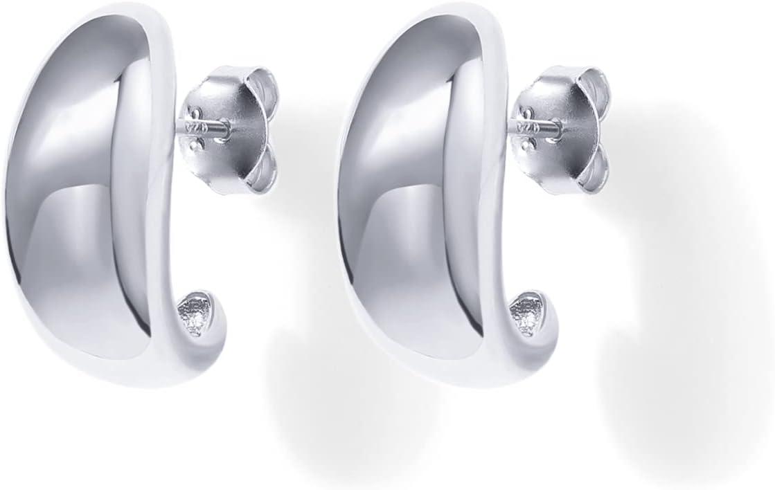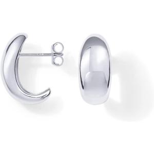 PAVOI 14K Gold Plated 925 Sterling Silver Post Huggie Earrings | Gold Dome Huggie Hoop Earrings for Women(White Gold)