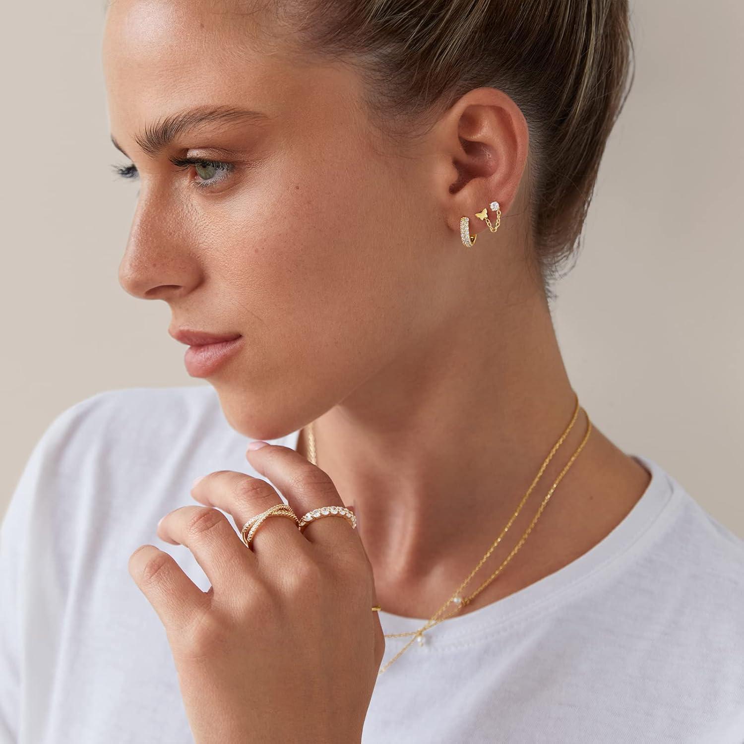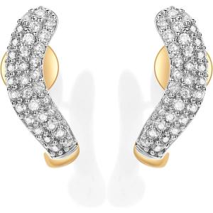 PAVOI 14K Gold Plated 925 Sterling Silver Post CZ Wavy Stud Earrings | Twisted Wave Cubic Zirconia Half Huggie Earrings for Women(Yellow Gold)