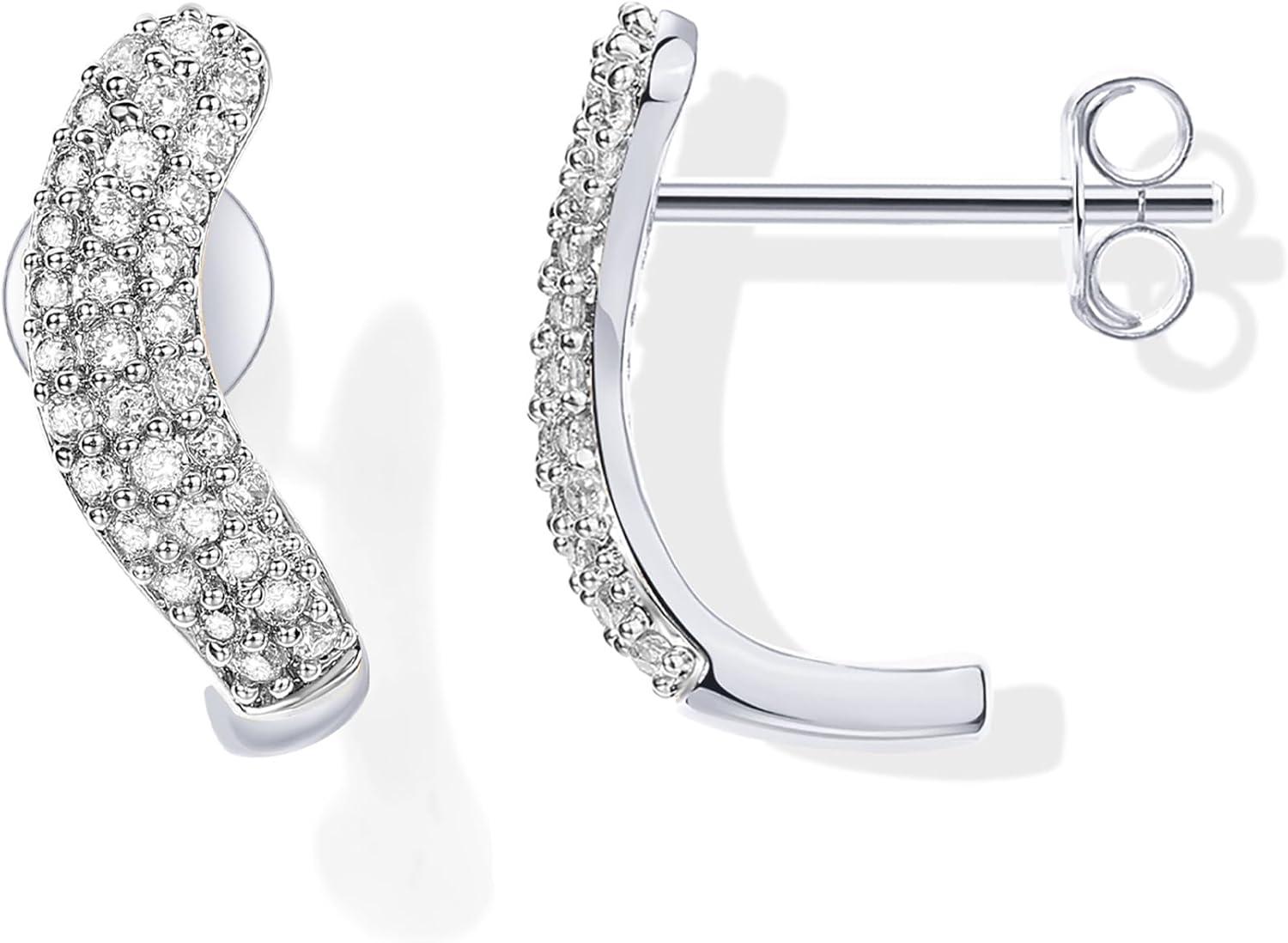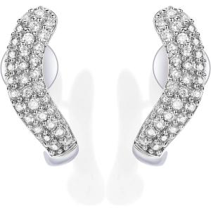 PAVOI 14K Gold Plated 925 Sterling Silver Post CZ Wavy Stud Earrings | Twisted Wave Cubic Zirconia Half Huggie Earrings for Women(White Gold)