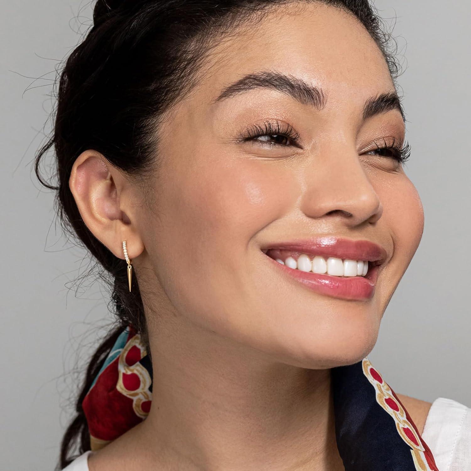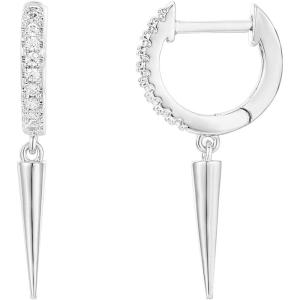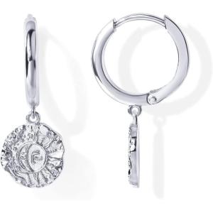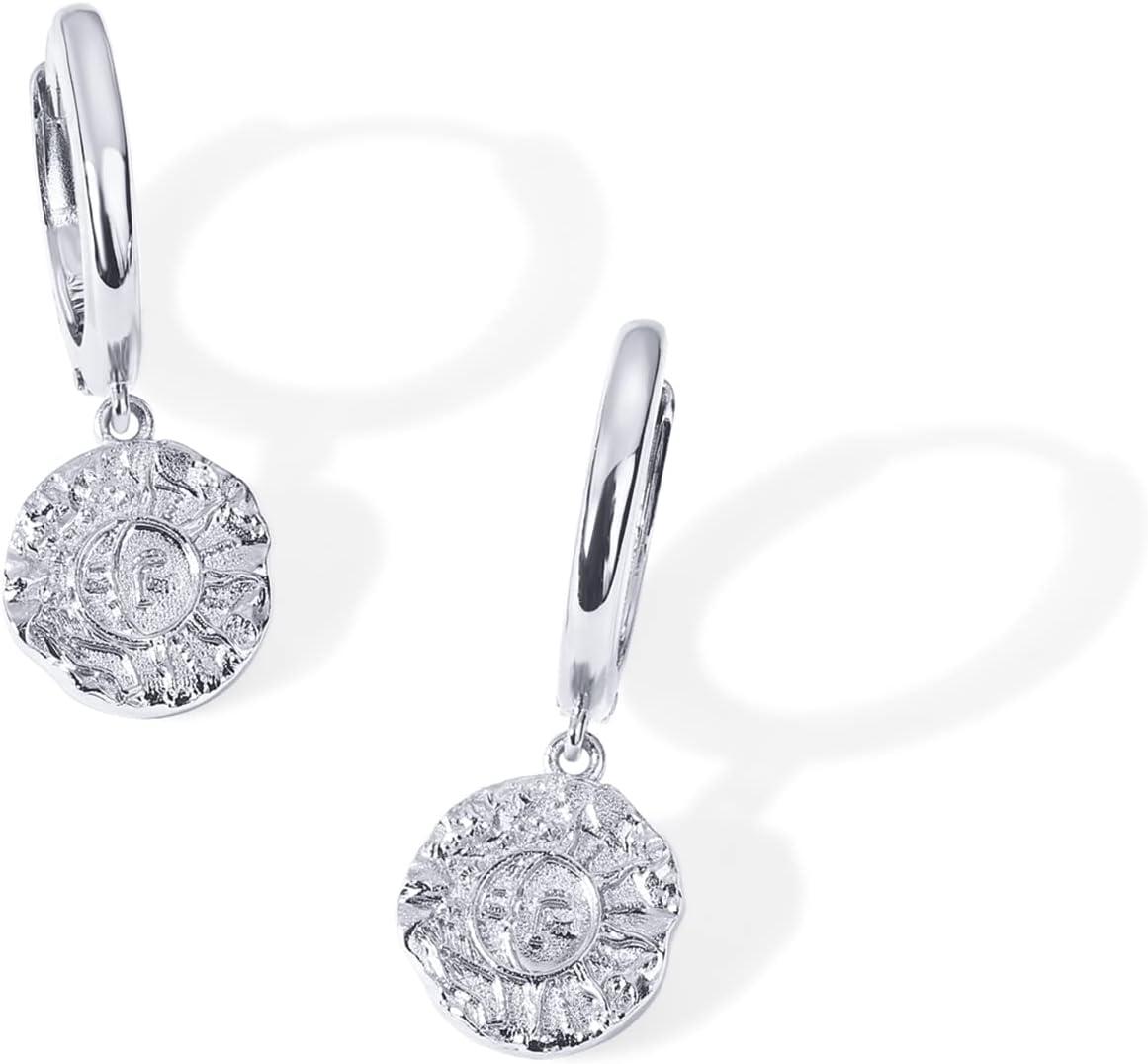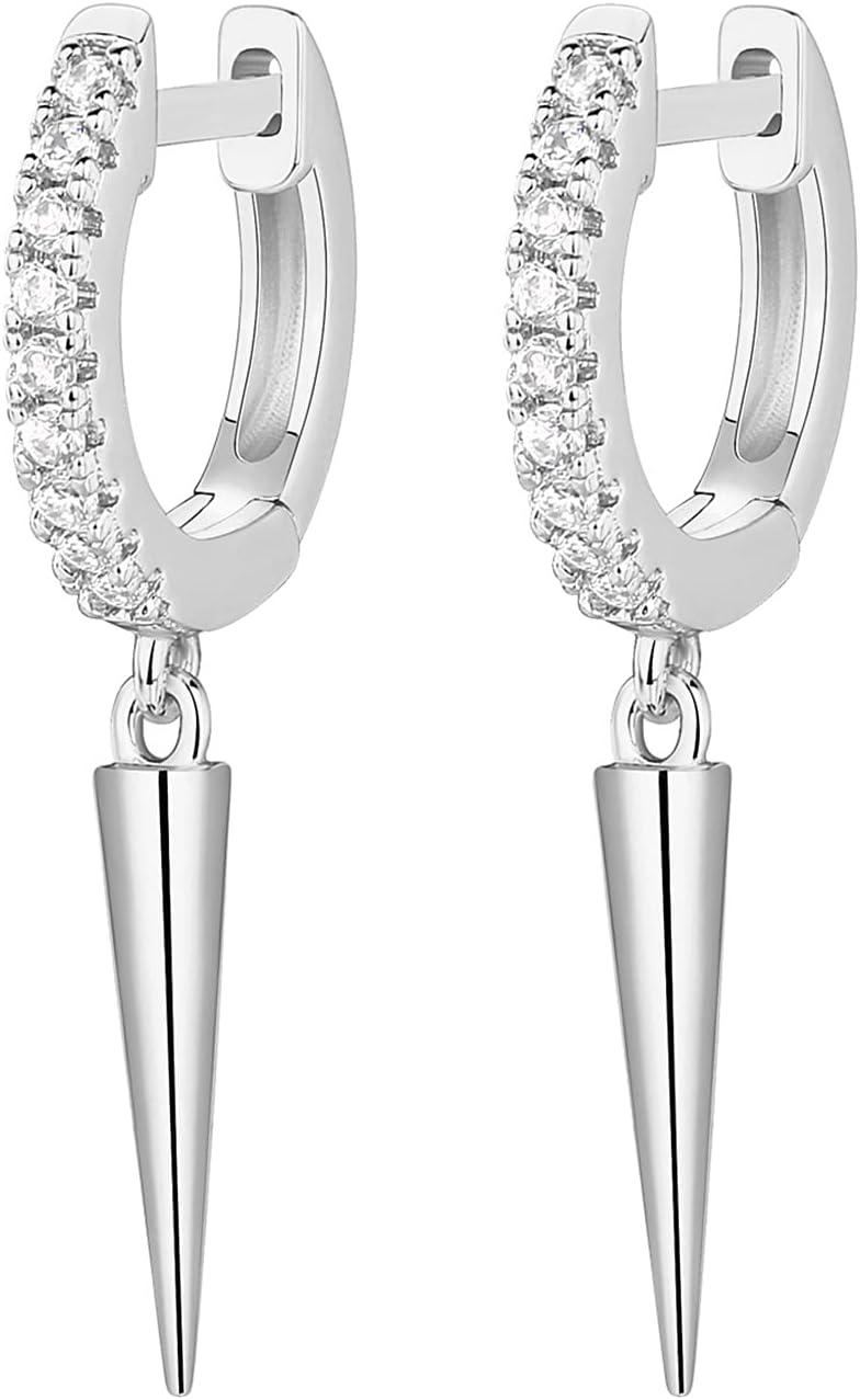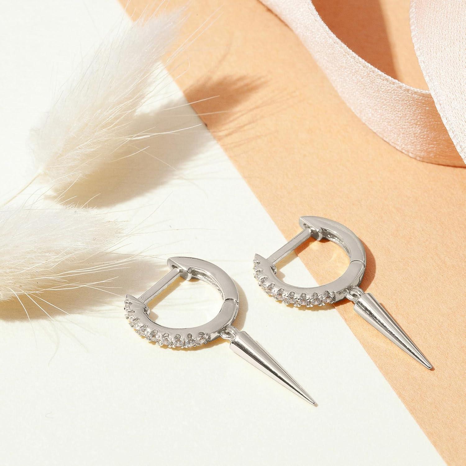 PAVOI 14K Gold Plated S925 Sterling Silver Post Lightweight Drop Dangle Huggie Hoop Earrings for Women | Star, Lock, Pearl, Cross, Lightening, Coin | Dainty Earrings(White Gold)