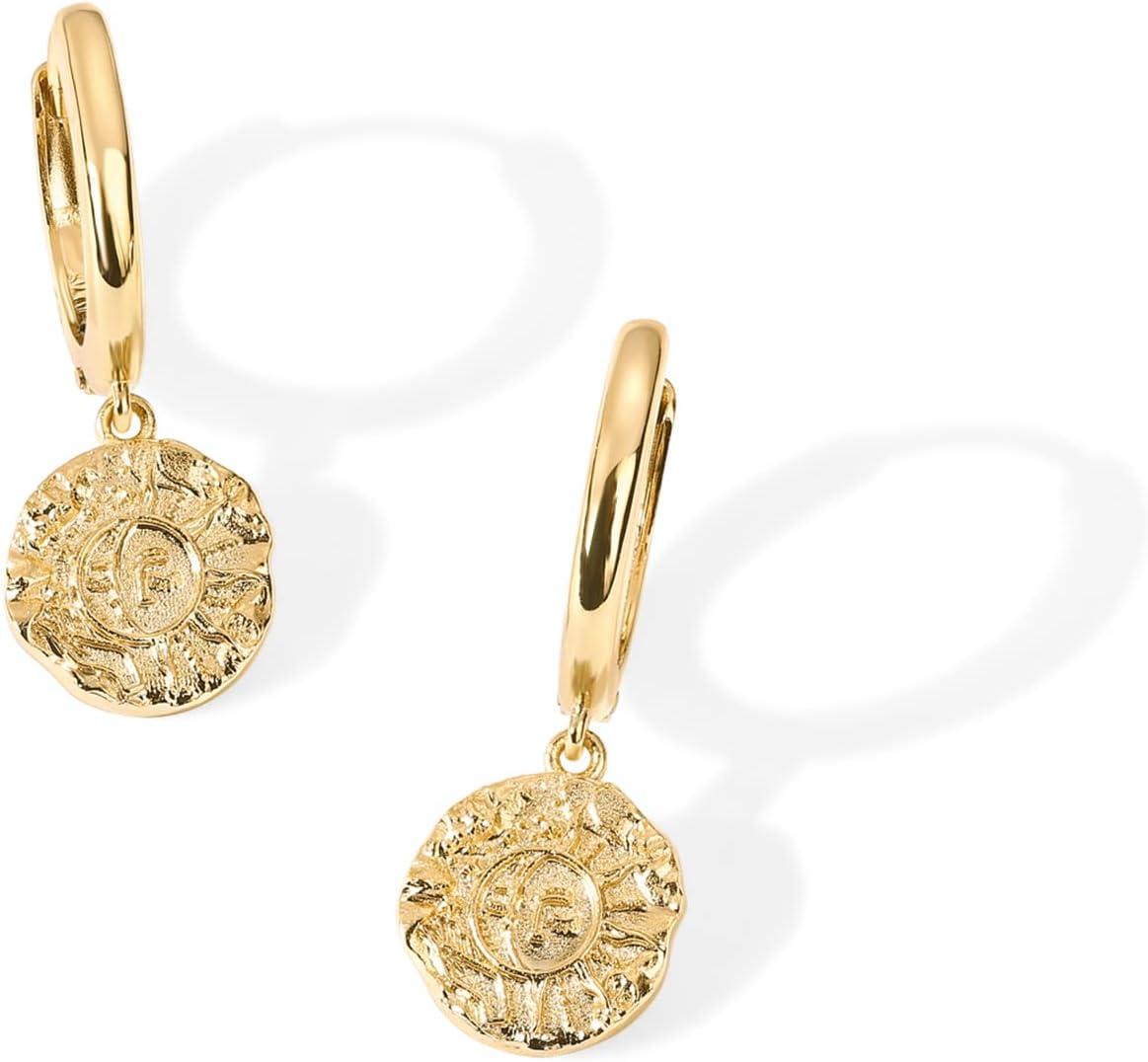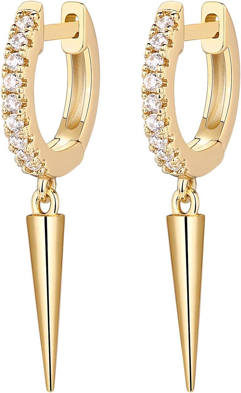 PAVOI 14K Gold Plated S925 Sterling Silver Post Lightweight Drop Dangle Huggie Hoop Earrings for Women | Star, Lock, Pearl, Cross, Lightening, Coin | Dainty Earrings(Yellow Gold)