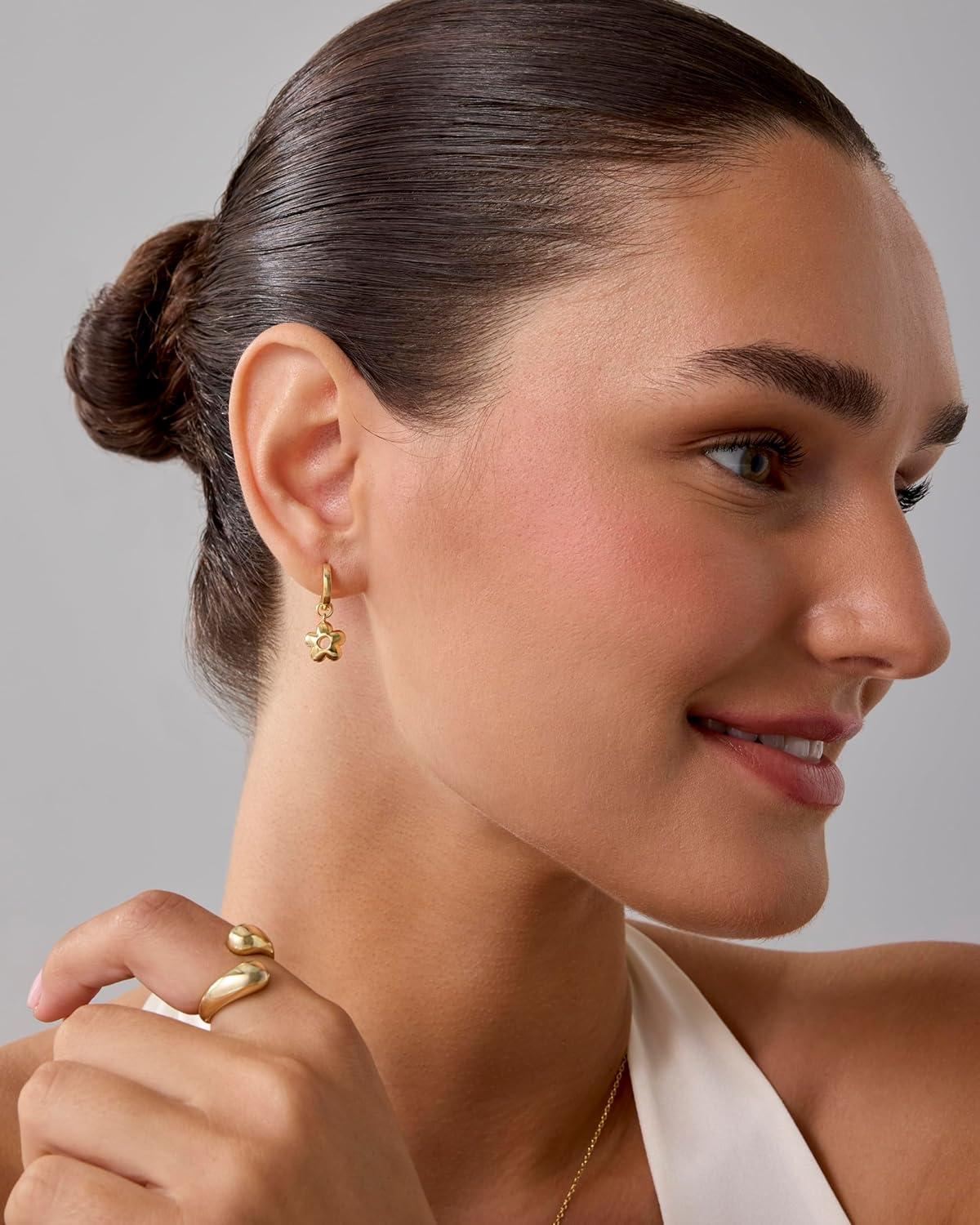 PAVOI 14K Gold Plated 925 Sterling Silver Posts Charm Huggie Earrings for Women | Lightweight Love Heart Moon Flower Star Drop Dangle Huggie Charm Earring(Yellow Gold)