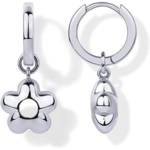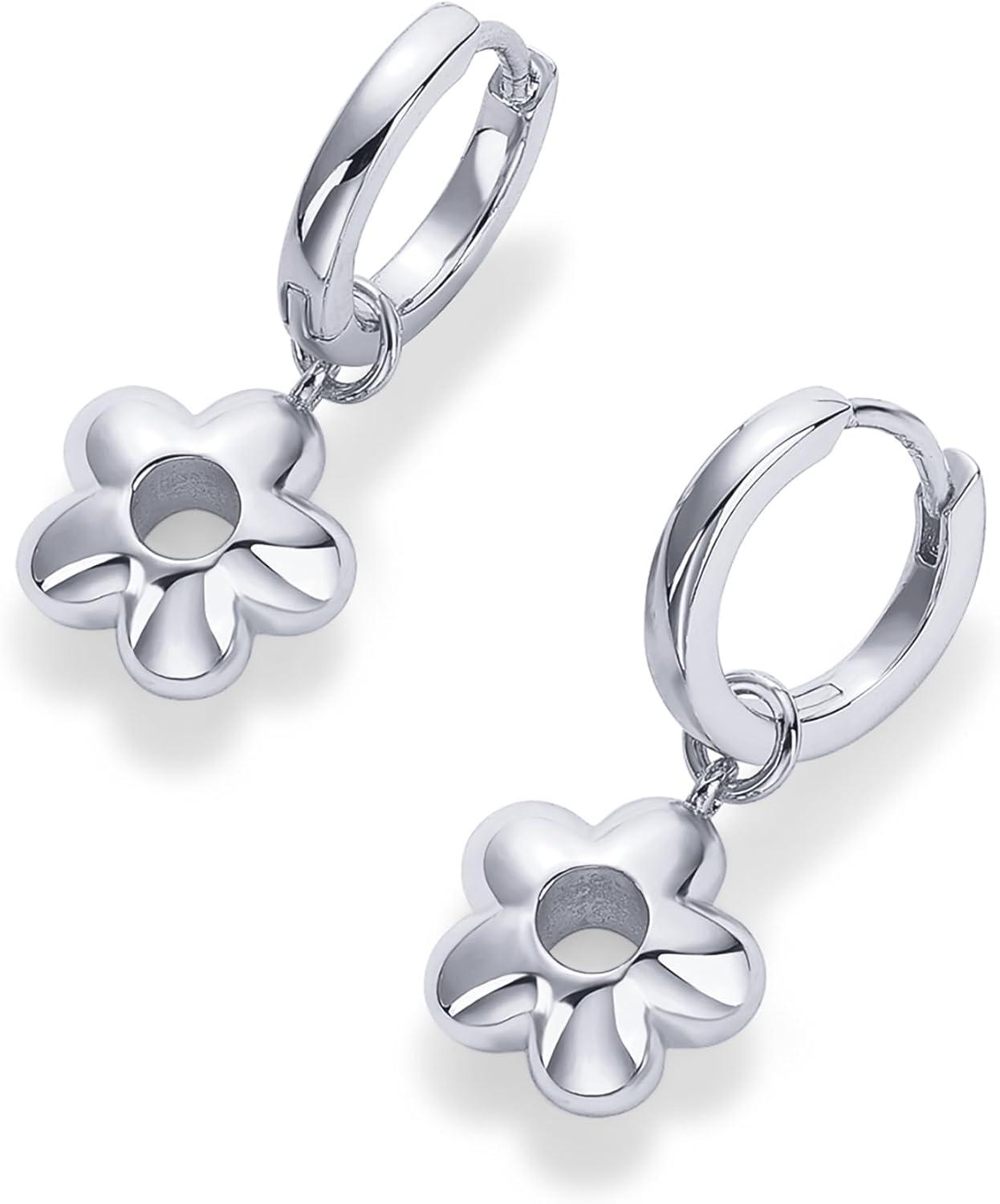 PAVOI 14K Gold Plated 925 Sterling Silver Posts Charm Huggie Earrings for Women | Lightweight Love Heart Moon Flower Star Drop Dangle Huggie Charm Earring(White Gold)