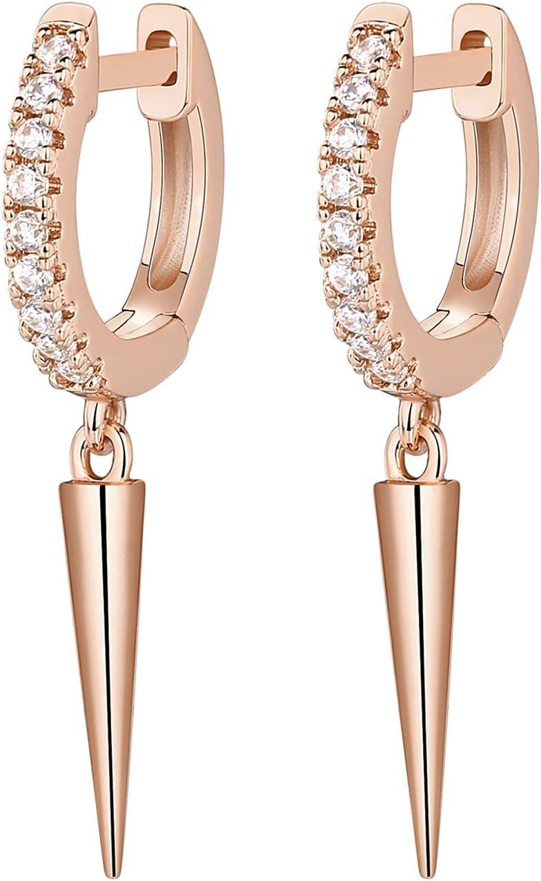 PAVOI 14K Gold Plated S925 Sterling Silver Post Lightweight Drop/Dangle Huggie Earrings for Women | Star, Lock, Butterfly, Moon, Lightning | Dainty Earrings(Rose Gold)