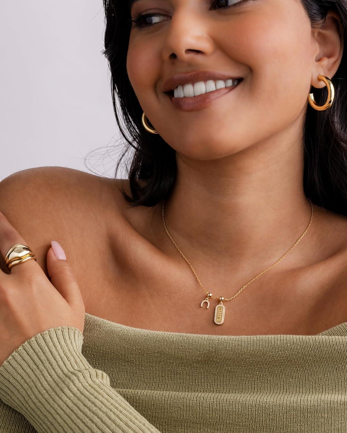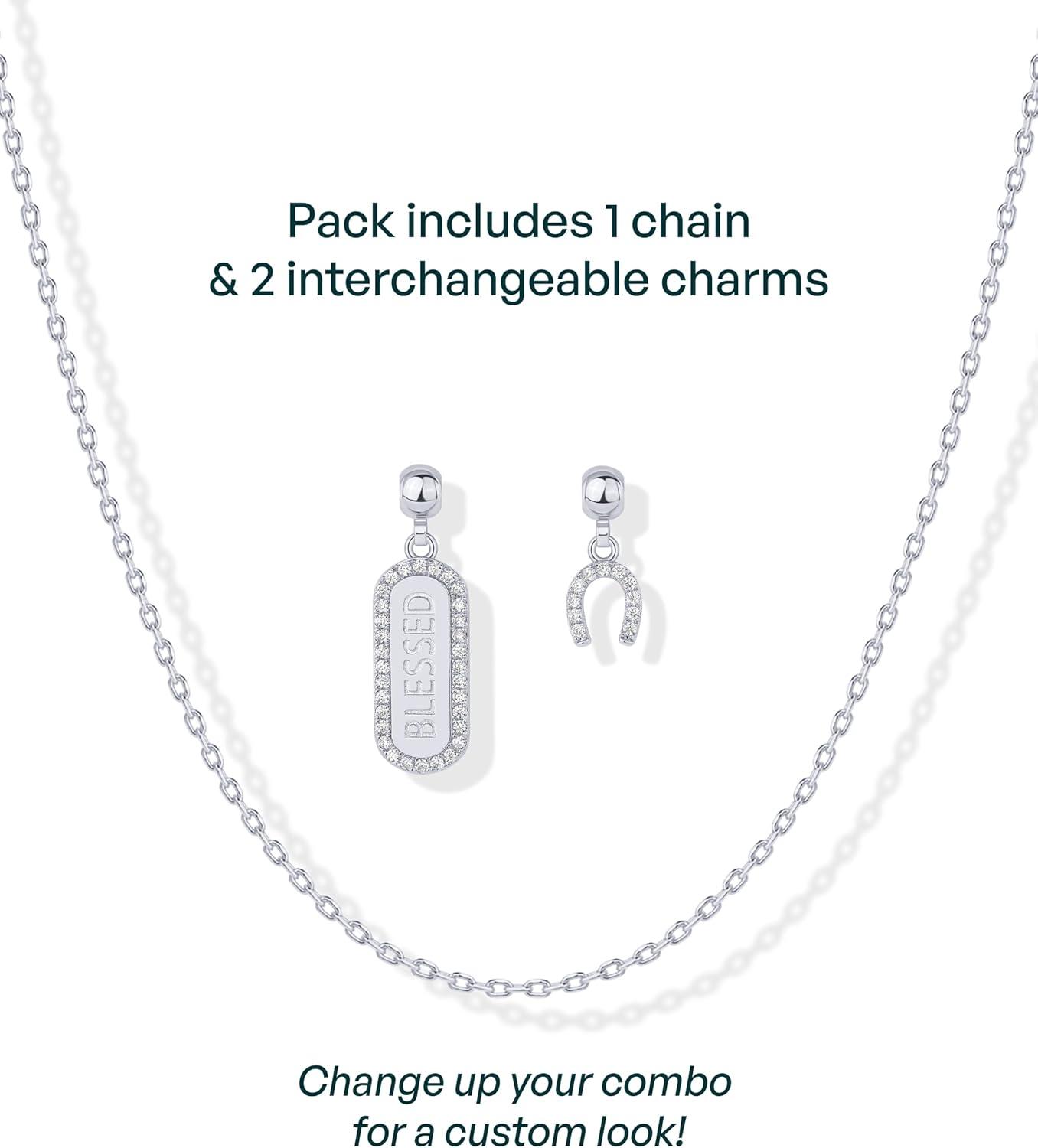 PAVOI 14K Gold Plated Dainty Necklace with Charms Set – Hypoallergenic Adjustable Chain Gold Charm Necklace for Women – Small Motif & Mantra 2 and 3-Pack Removable Pendants – Cute Jewelry Gifts(White Gold)