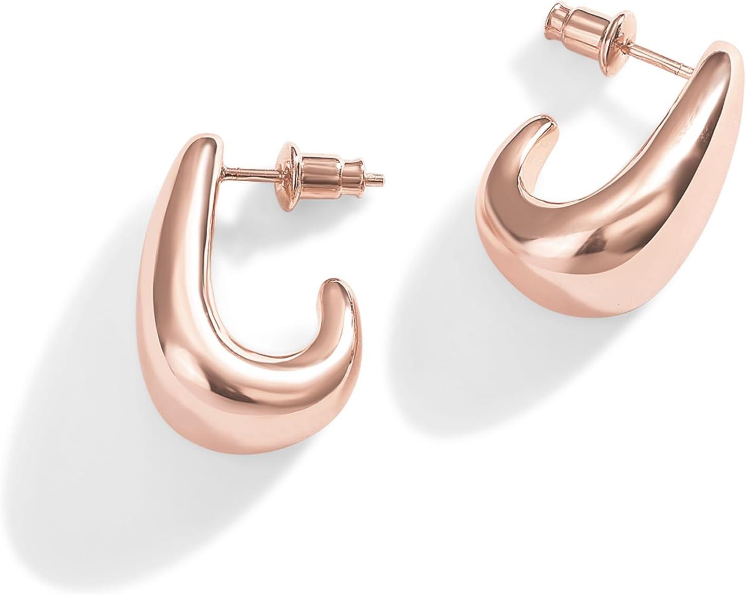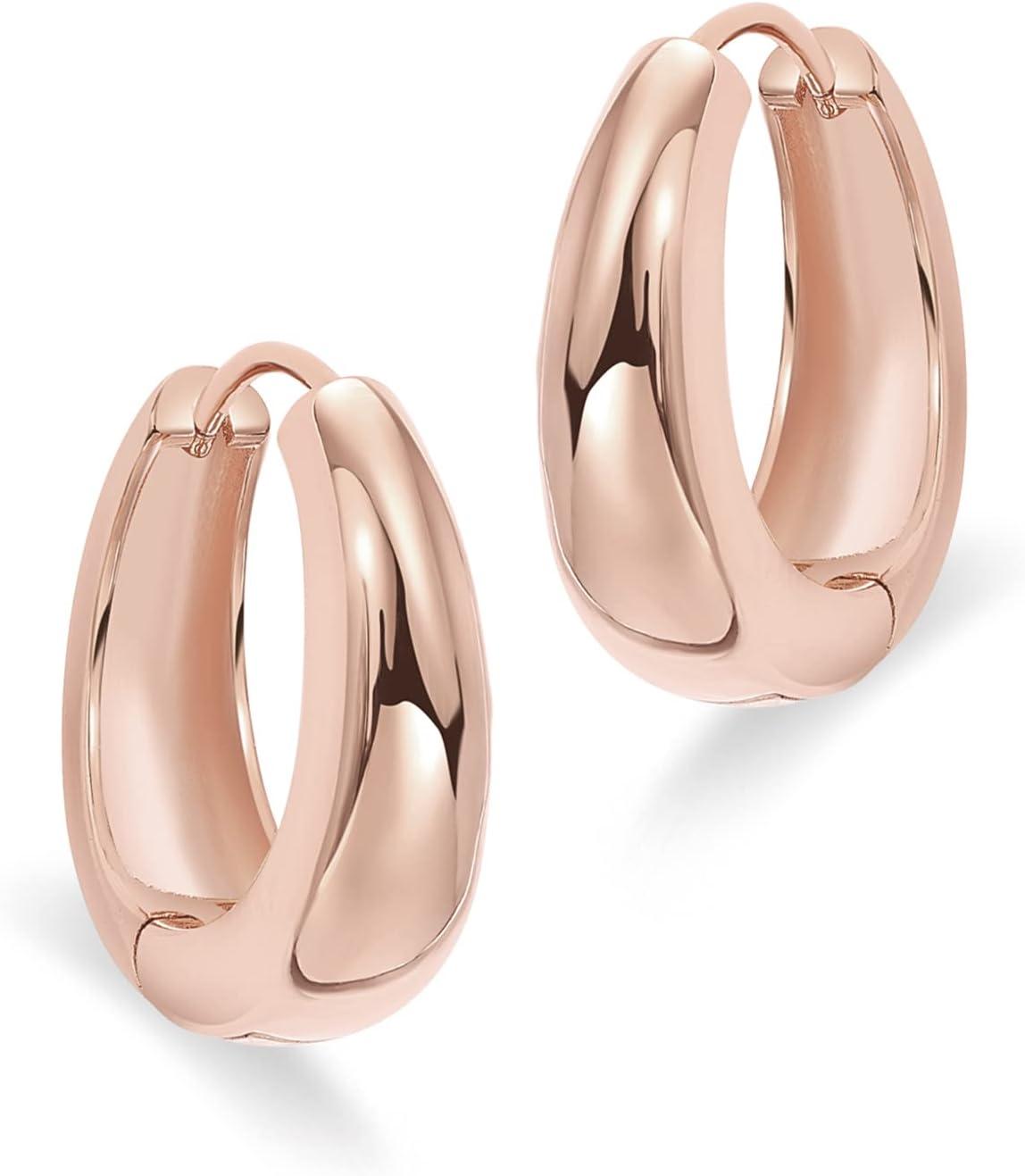 PAVOI 14K Gold Plated 925 Sterling Silver Post Small Chunky Hoops Earrings | Thick Lightweight Gold Hoop Earrings for Women(Rose Gold)
