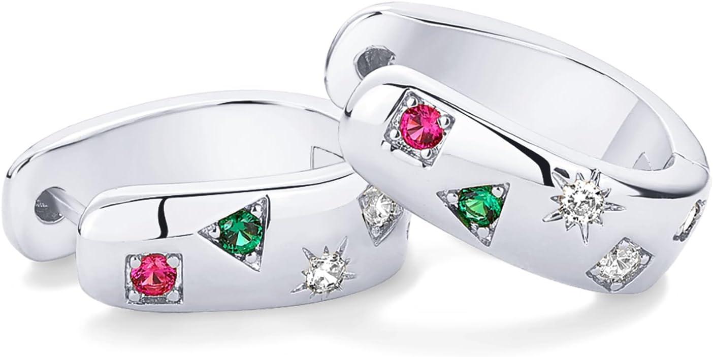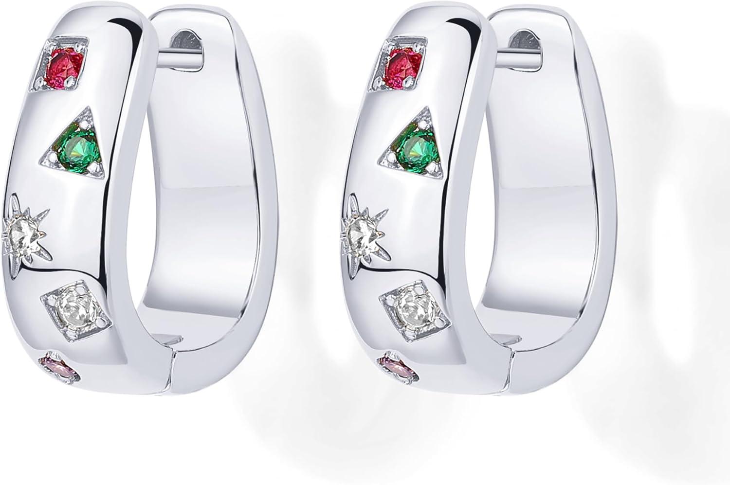 PAVOI 14K Gold Plated 925 Sterling Silver Posts Chunky Huggie Earrings for Women | Multi-Colored Cubic Zirconia Statement Hoop Earrings(White Gold)