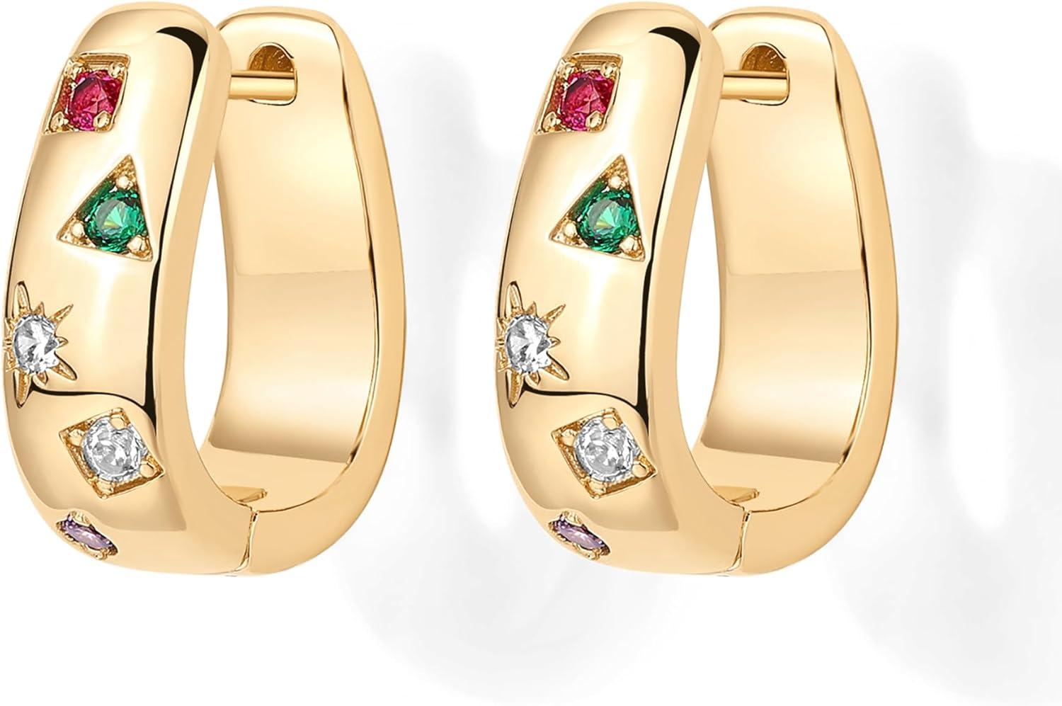 PAVOI 14K Gold Plated 925 Sterling Silver Posts Chunky Huggie Earrings for Women | Multi-Colored Cubic Zirconia Statement Hoop Earrings(Yellow Gold)