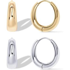 PAVOI 14K Gold Plated 925 Sterling Silver Post Small Chunky Hoops Earrings | Thick Lightweight Gold Hoop Earrings for Women(White & Yellow Gold)