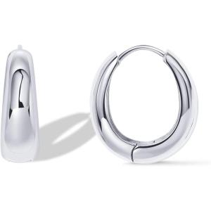 PAVOI 14K Gold Plated 925 Sterling Silver Post Small Chunky Hoops Earrings | Thick Lightweight Gold Hoop Earrings for Women(White Gold)