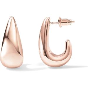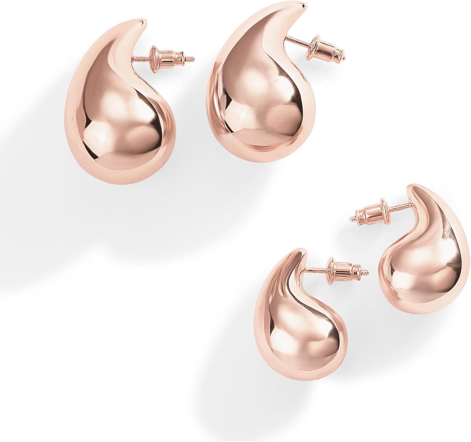 PAVOI 14K Gold Plated 925 Sterling Silver Post Teardrop Chunky Hoop Earrings – Lightweight Drop Earrings for Women – Designer Dupe(Rose Gold)