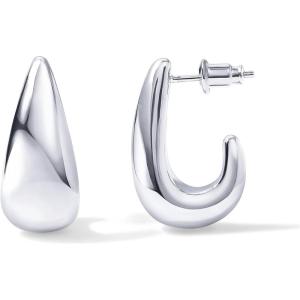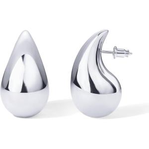 PAVOI 14K Gold Plated 925 Sterling Silver Post Teardrop Chunky Hoop Earrings – Lightweight Drop Earrings for Women – Designer Dupe(White Gold)