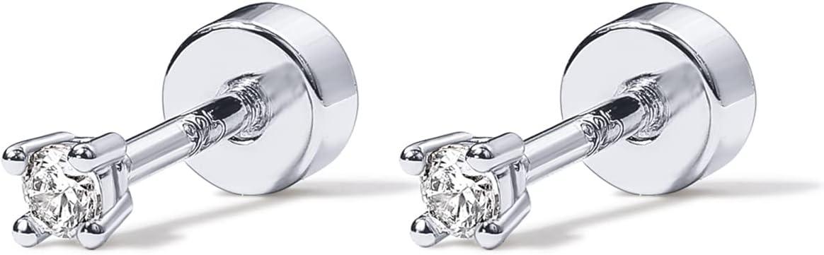 PAVOI 14K Gold Plated Solid 925 Sterling Silver Post Cubic Zirconia Stud Flat Back Earrings for Women | Cartilage Earring | Helix Piercing Jewelry | Small Stud Earrings for Women(White Gold)