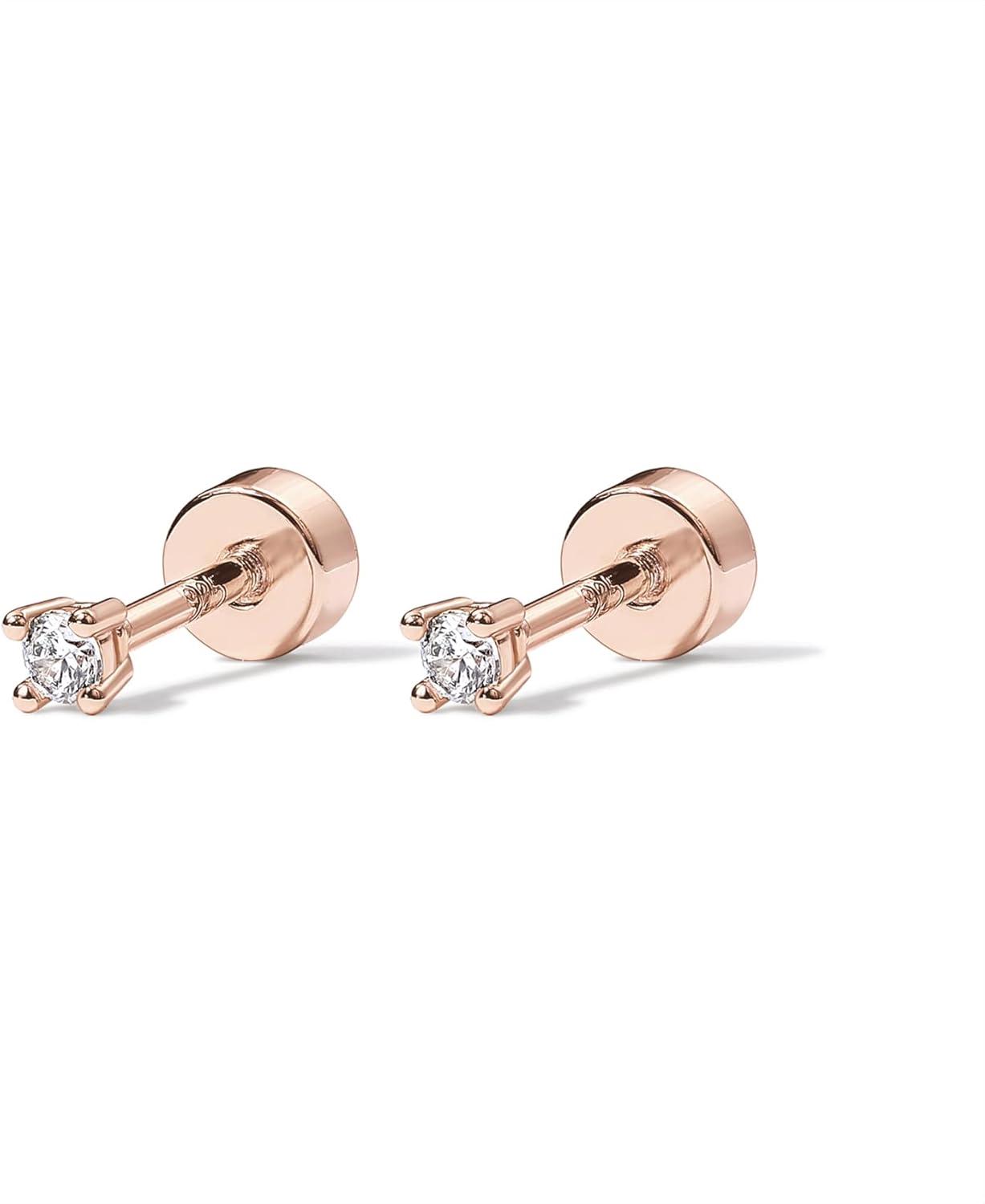 PAVOI 14K Gold Plated Solid 925 Sterling Silver Post Cubic Zirconia Stud Flat Back Earrings for Women | Cartilage Earring | Helix Piercing Jewelry | Small Stud Earrings for Women(Rose Gold)
