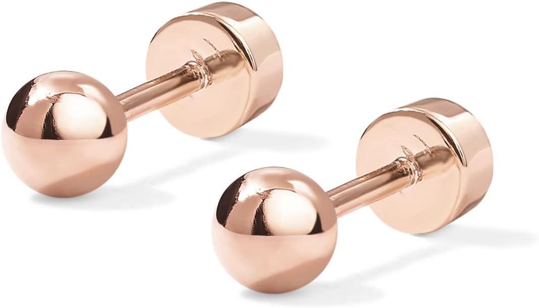 PAVOI 14K Gold Plated Solid 925 Sterling Silver Posts Dainty Ball Stud Flatback Earrings for Women – Cartilage Helix Piercing Jewelry – Small Screwbacks Stud Earrings for Women(Rose Gold)