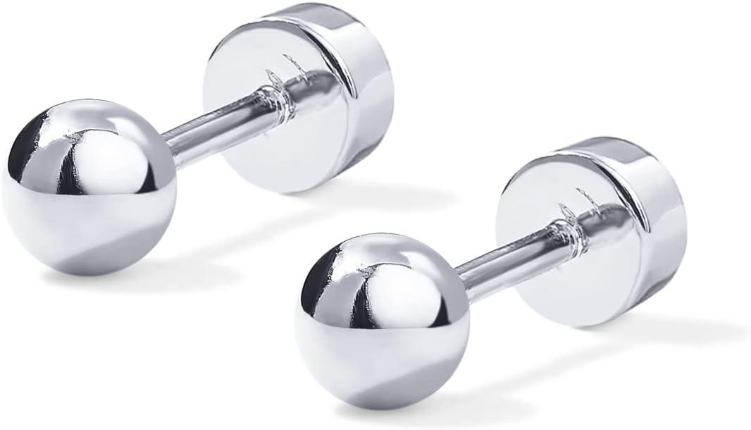 PAVOI 14K Gold Plated Solid 925 Sterling Silver Posts Dainty Ball Stud Flatback Earrings for Women – Cartilage Helix Piercing Jewelry – Small Screwbacks Stud Earrings for Women(White Gold)
