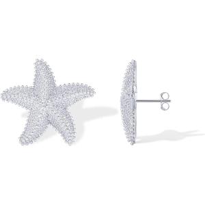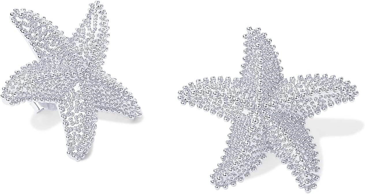 PAVOI 14K Gold Plated Starfish Statement Stud Earrings for Women | Trendy Jewelry Alluring Ocean-Themed Dangling Earrings(White Gold)