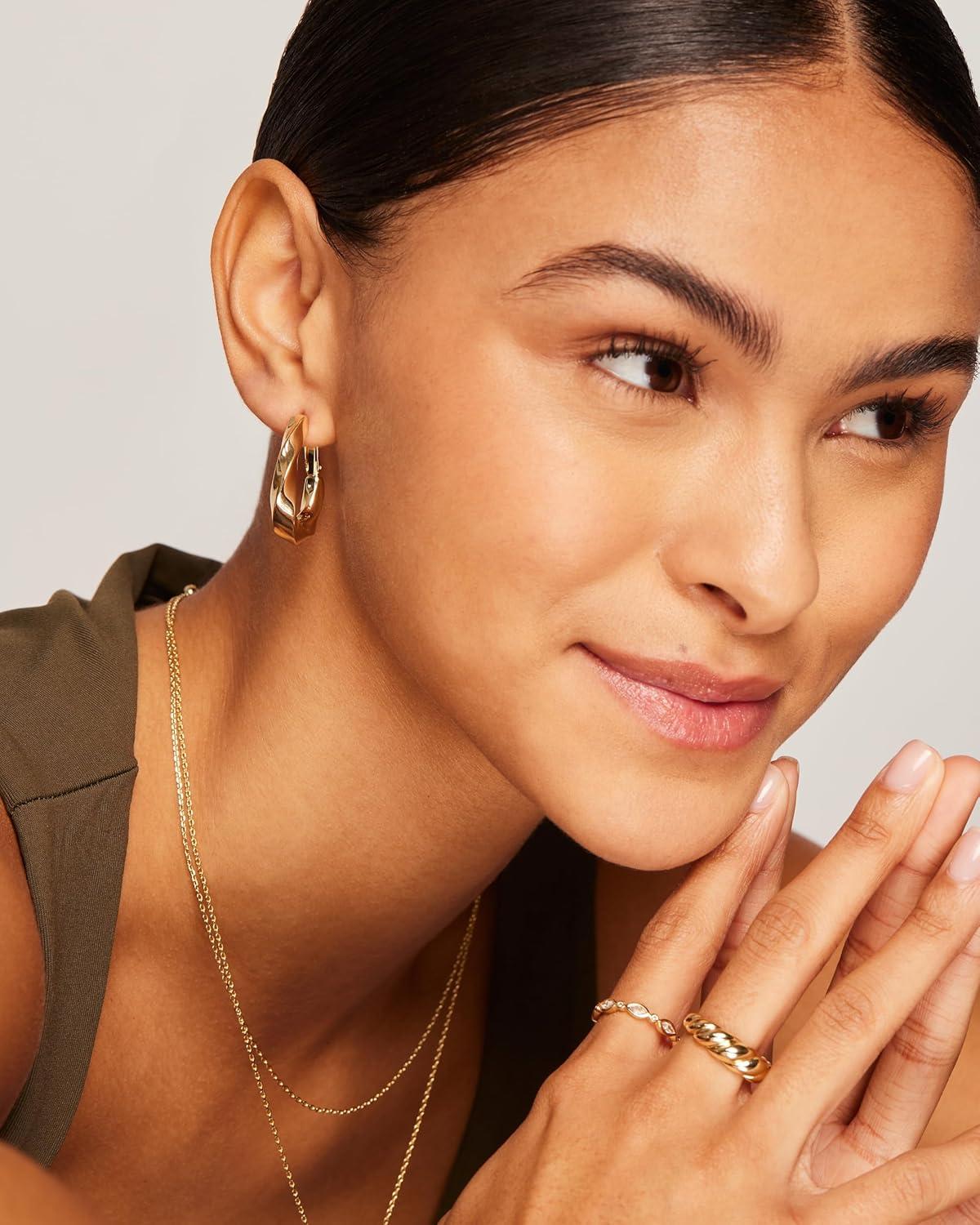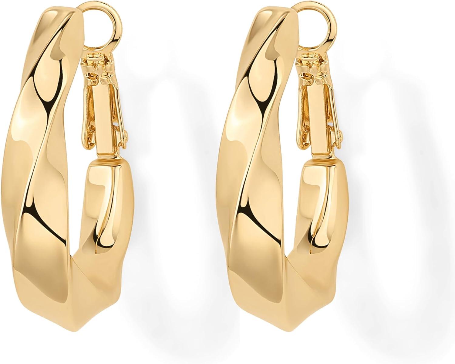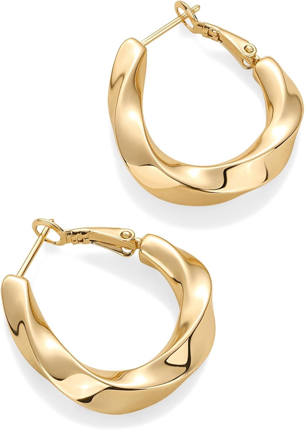 PAVOI 14K Gold Plated 925 Sterling Silver Posts Chunky Wavy Hoop Earrings for Women | Lightweight Statement Twisted Endless Wave Hoops Earrings(Yellow Gold)