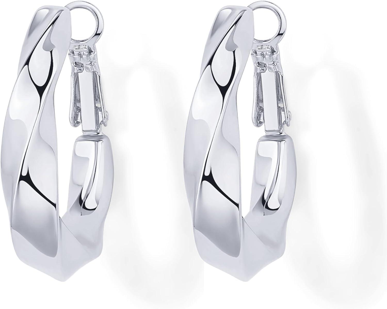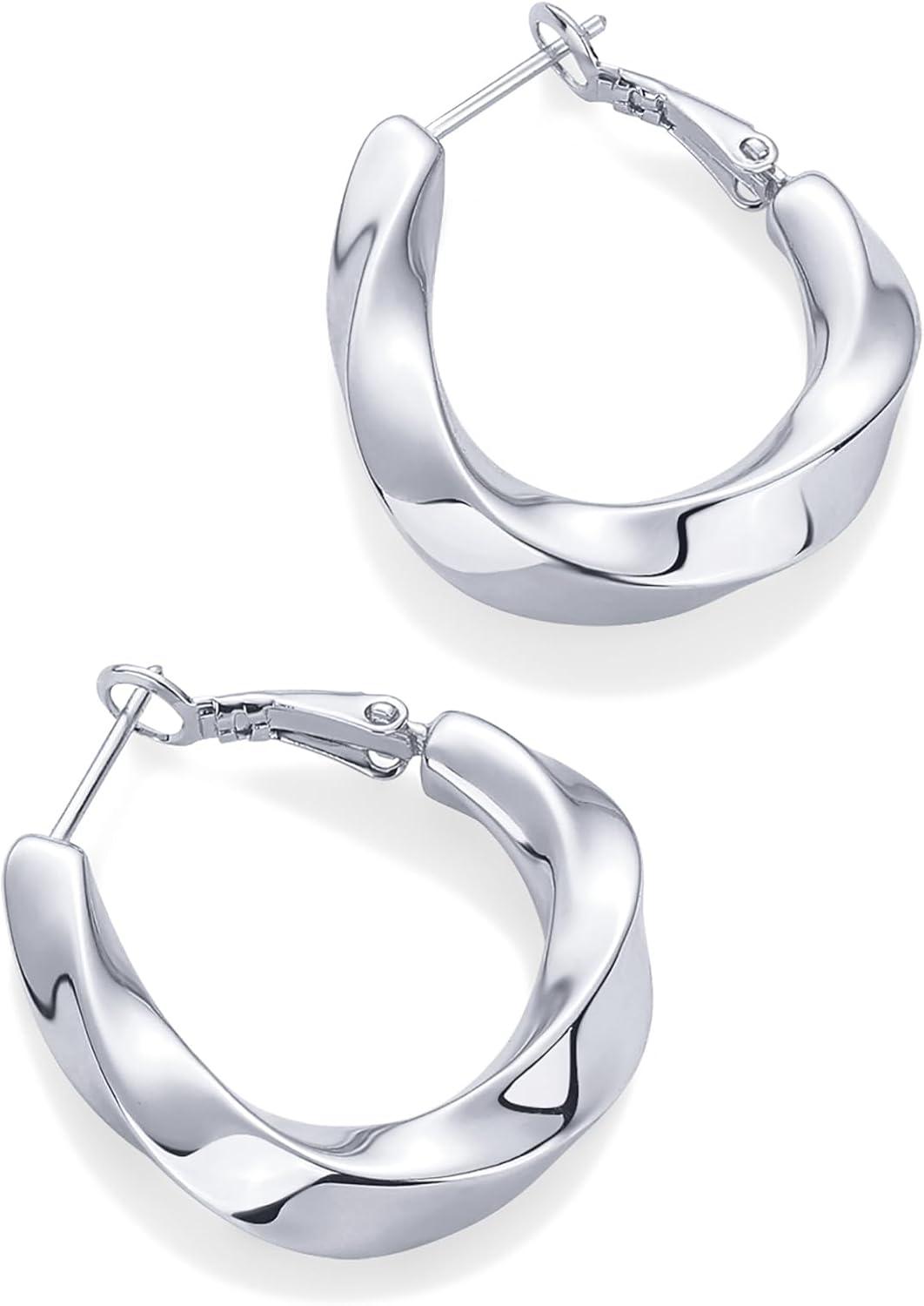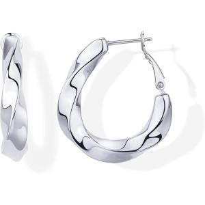PAVOI 14K Gold Plated 925 Sterling Silver Posts Chunky Wavy Hoop Earrings for Women | Lightweight Statement Twisted Endless Wave Hoops Earrings(White Gold)