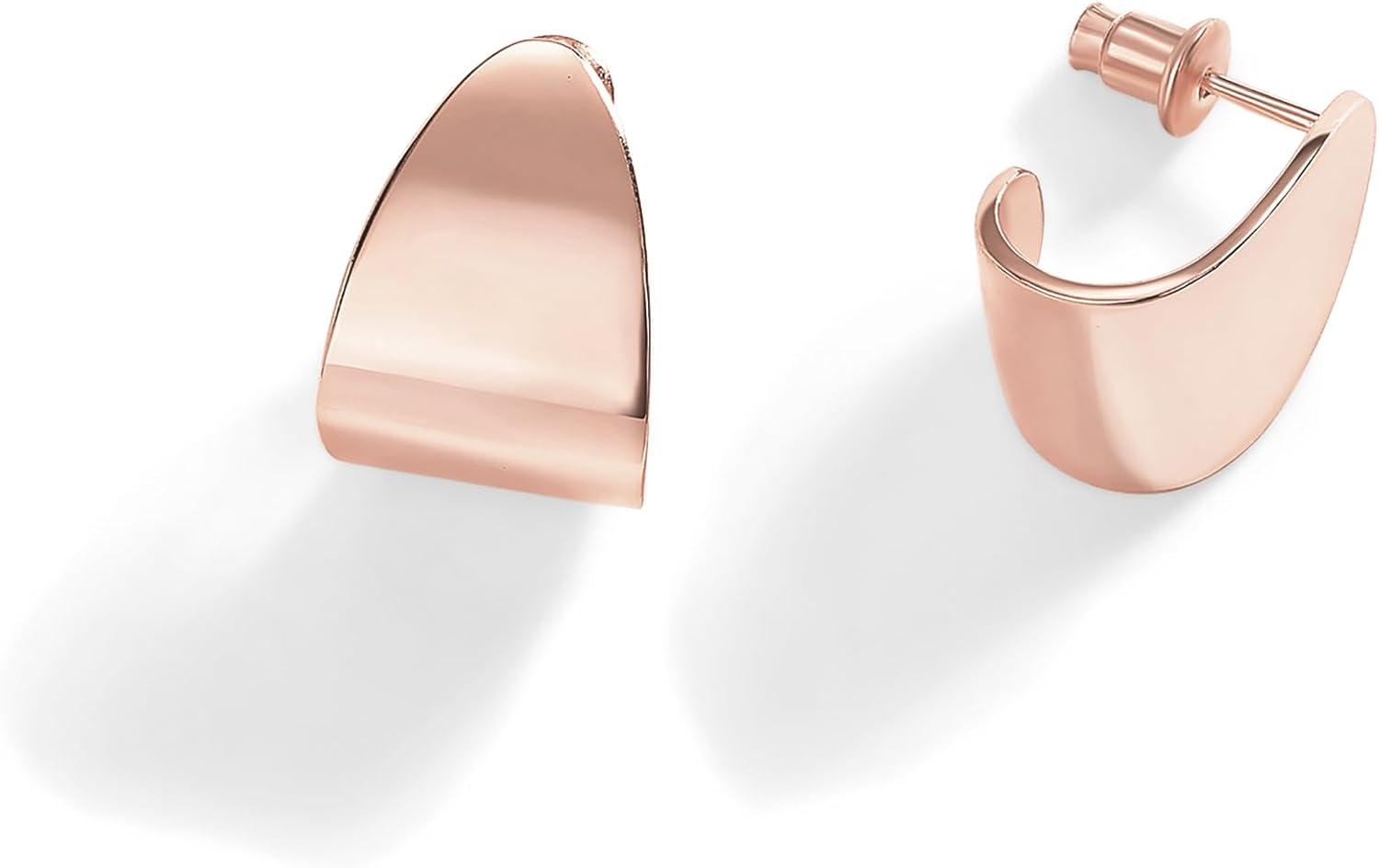 PAVOI 14K Gold Plated 925 Sterling Silver Posts Chunky Hoop Earrings | Statement Huggie Hoops for Women | Lightweight Gold Dome Earrings(Rose Gold)