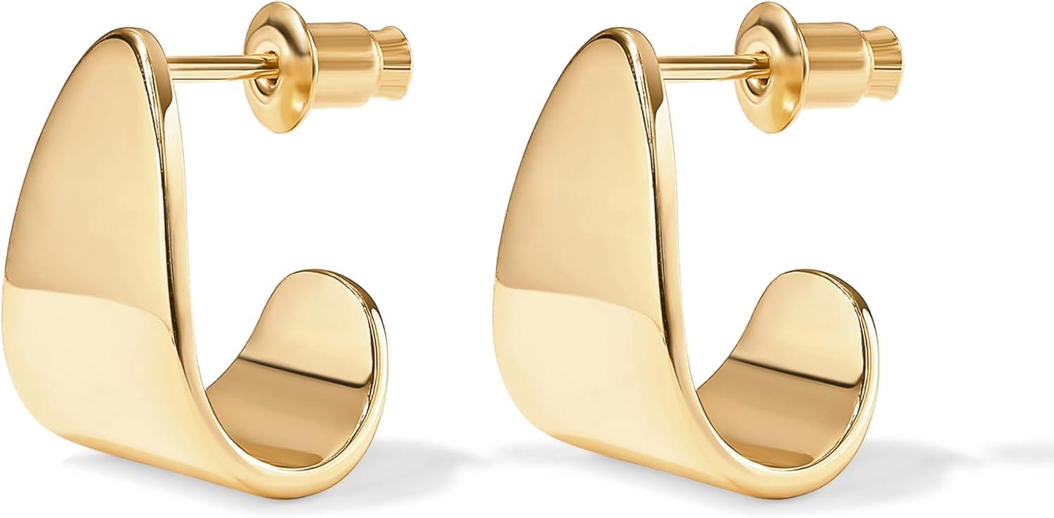 PAVOI 14K Gold Plated 925 Sterling Silver Posts Chunky Hoop Earrings | Statement Huggie Hoops for Women | Lightweight Gold Dome Earrings(Yellow Gold)