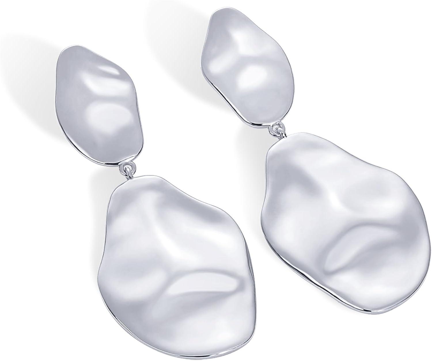 PAVOI 14K Gold Plated 925 Sterling Silver Posts Teardrop Statement Dangle Earrings | Lightweight Hammered Drop Dangle Earrings for Women(White Gold)