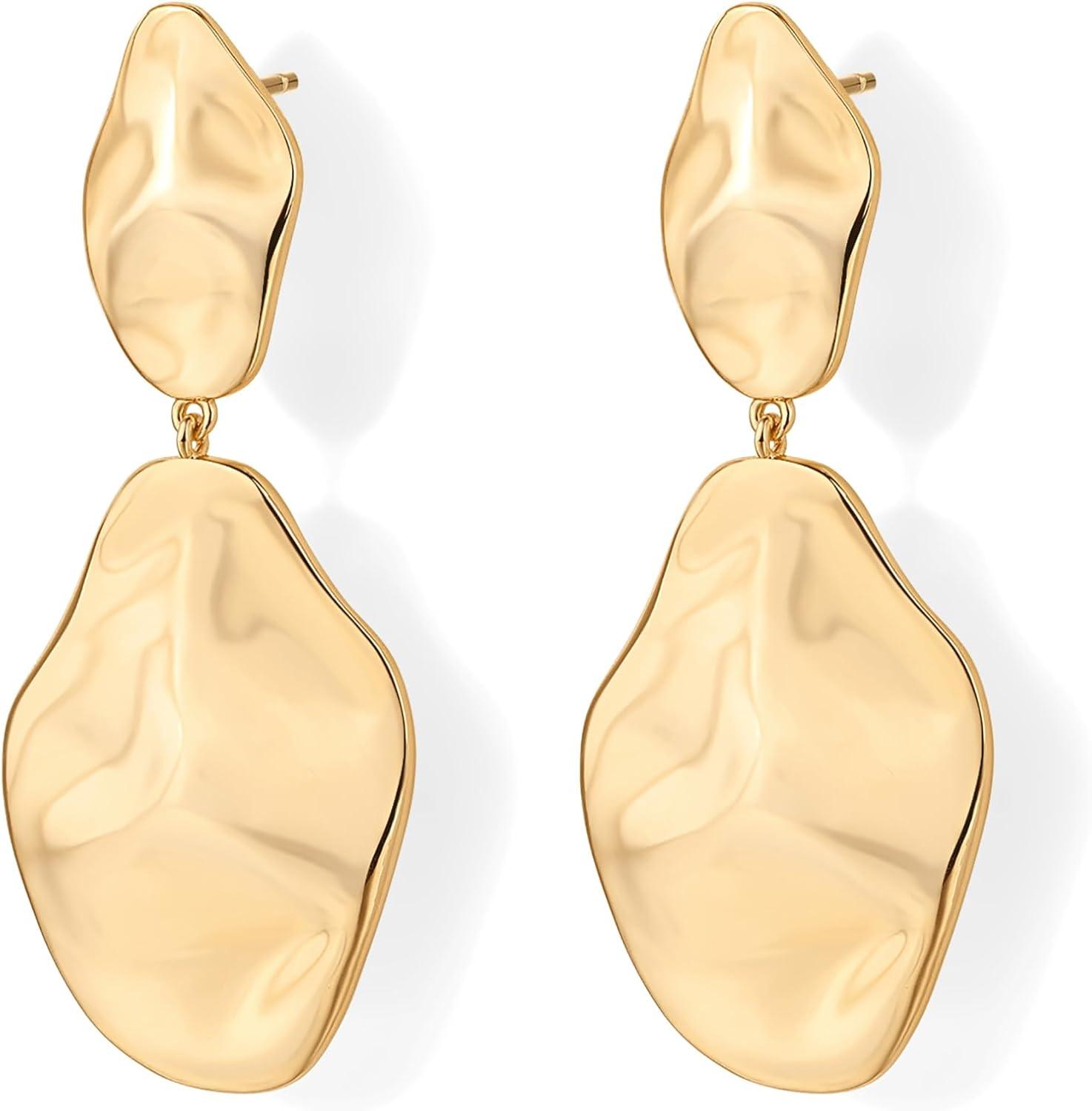 PAVOI 14K Gold Plated 925 Sterling Silver Posts Teardrop Statement Dangle Earrings | Lightweight Hammered Drop Dangle Earrings for Women(Yellow Gold)