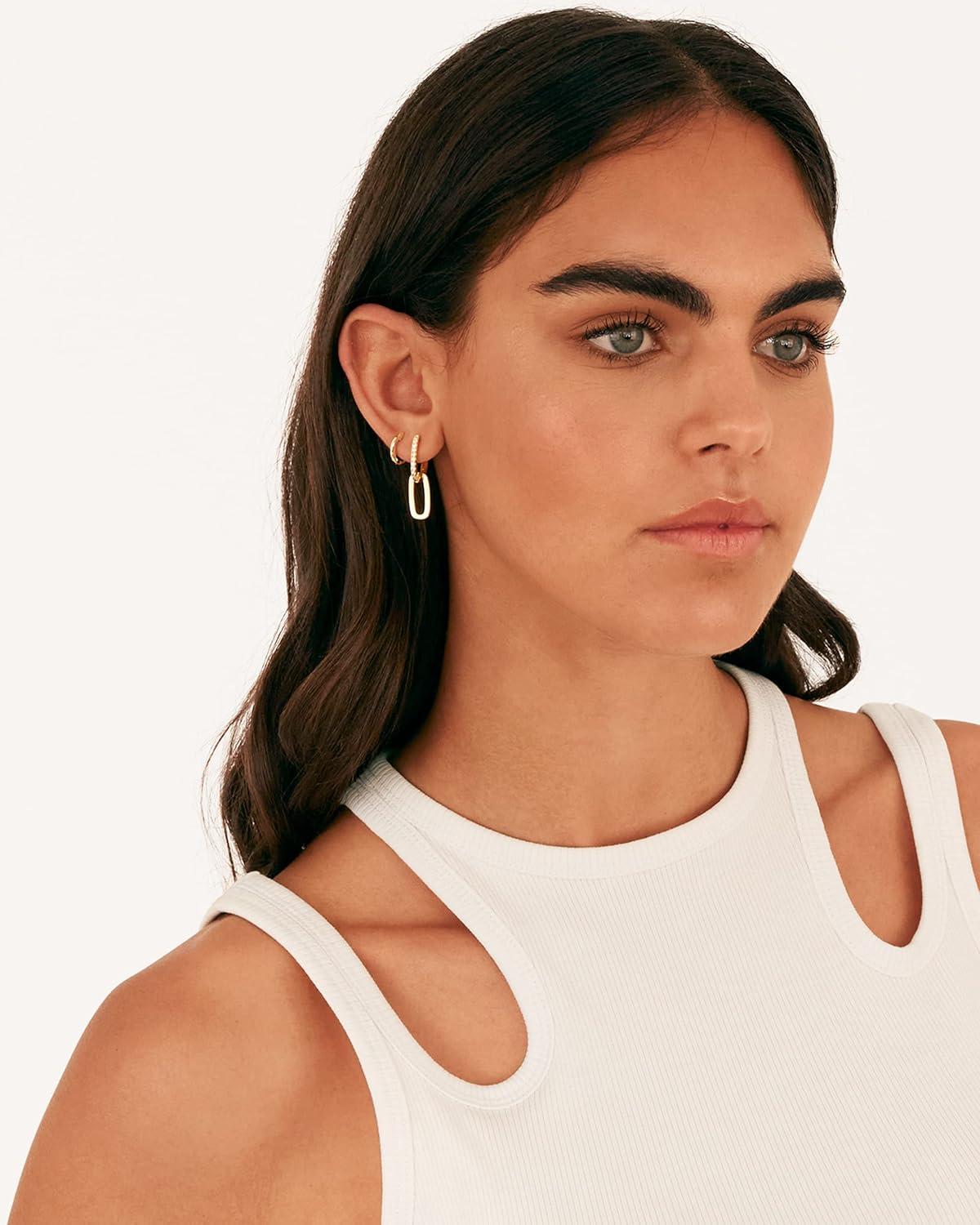 PAVOI 14K Gold Plated Convertible Paperclip Earrings for Women – Trendy Paper Clip Link Huggie Hoop Earrings – Chain Link Drop Dangle Hoops with Cubic Zirconia – Two-Toned Statement Jewelry(Yellow Gold)