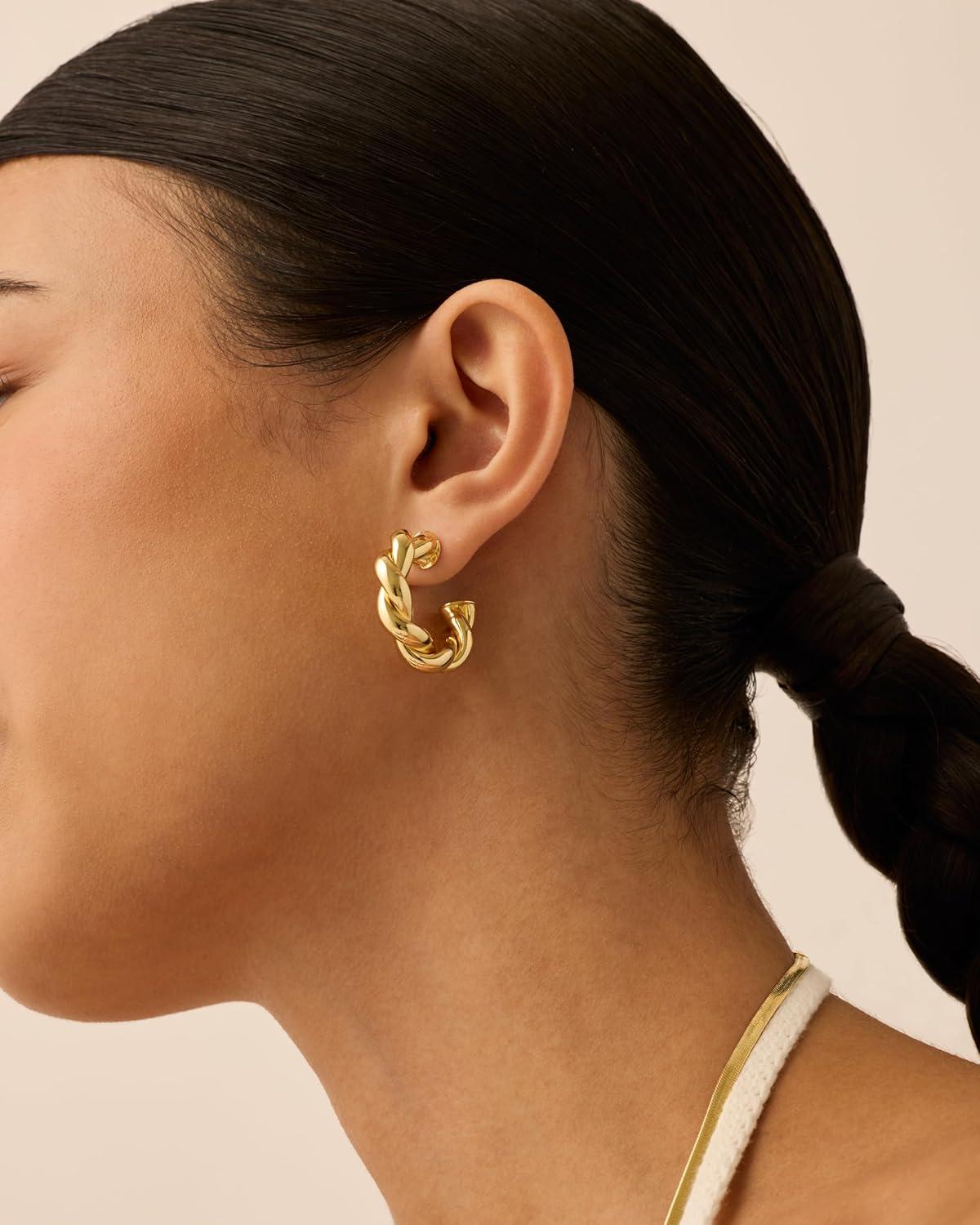 PAVOI 14K Gold Plated Chunky Twisted Puffed Rope Hoop Earrings for Women | Gold Earring Pair(Yellow Gold)