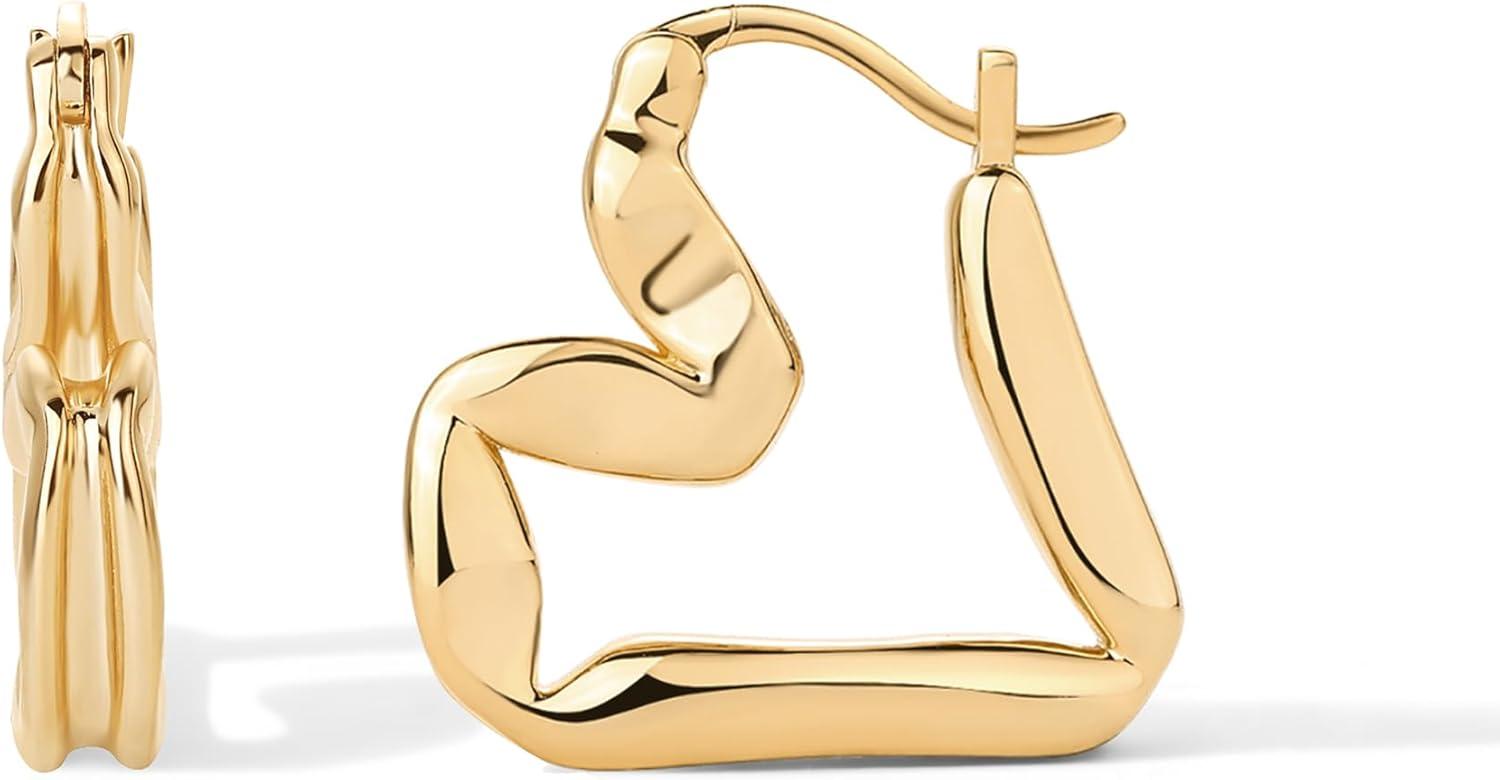 PAVOI 14K Gold Plated Bold Chunky Dupe Heart Hoop Earrings for Women | Gold Earring Pair(Heart)