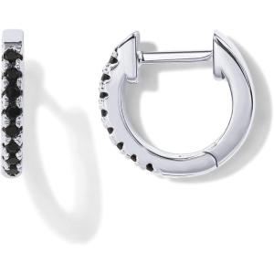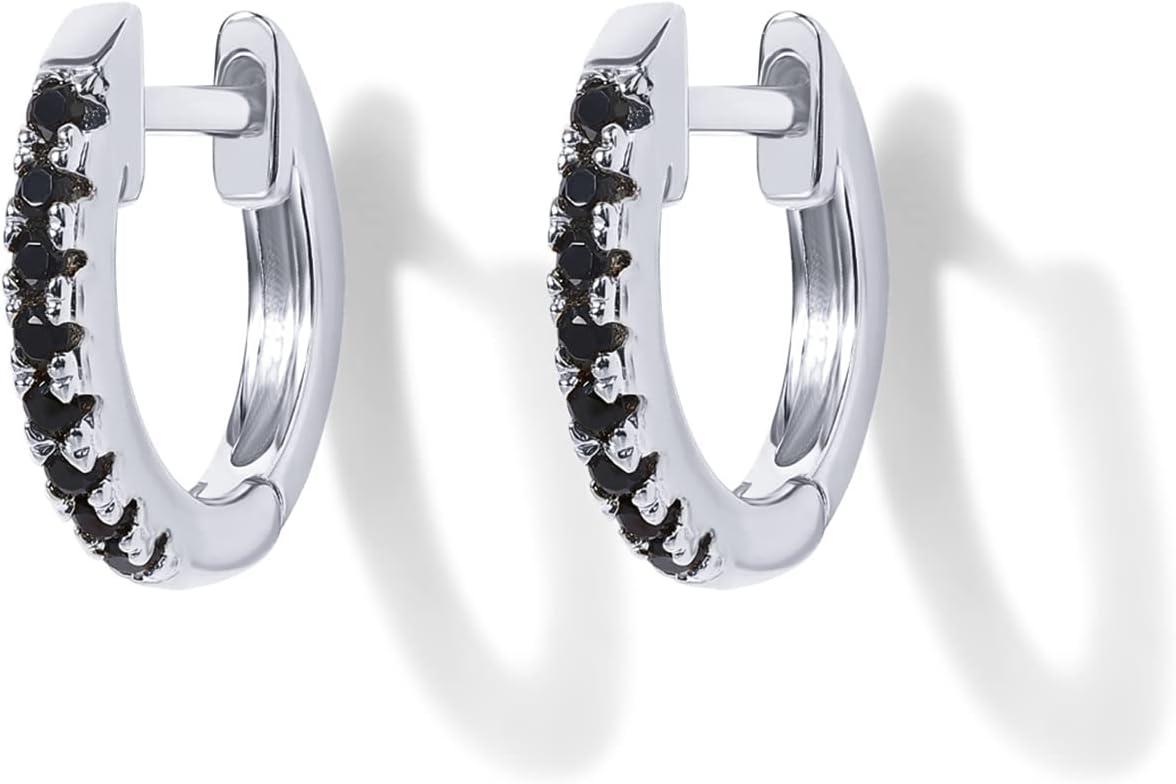 PAVOI 14K Gold Plated 925 Sterling Silver Post Huggies | Cubic Zirconia Huggie Earrings for Women | Green, Garnet, Spinel Blue, Black, Multicolored Stones(Black CZ)