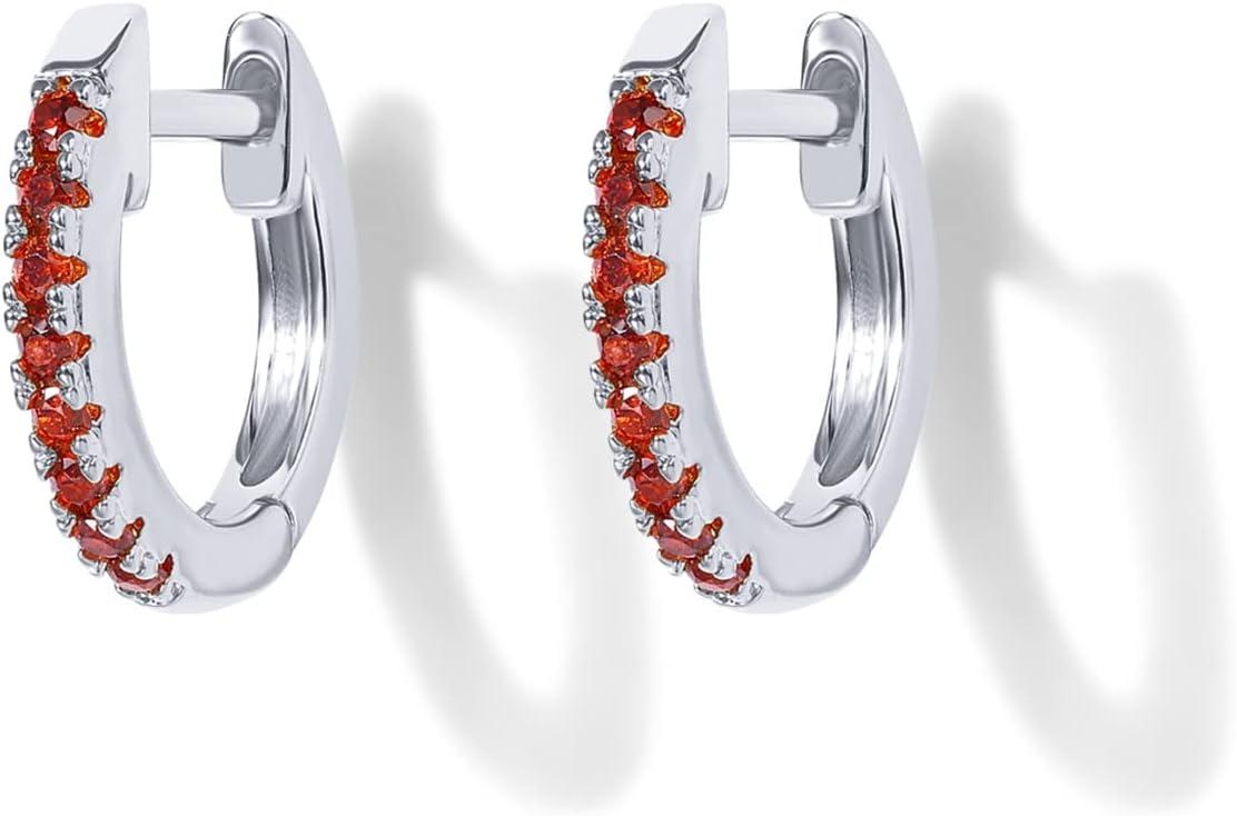 PAVOI 14K Gold Plated 925 Sterling Silver Post Huggies | Cubic Zirconia Huggie Earrings for Women | Green, Garnet, Spinel Blue, Black, Multicolored Stones(Garnet)