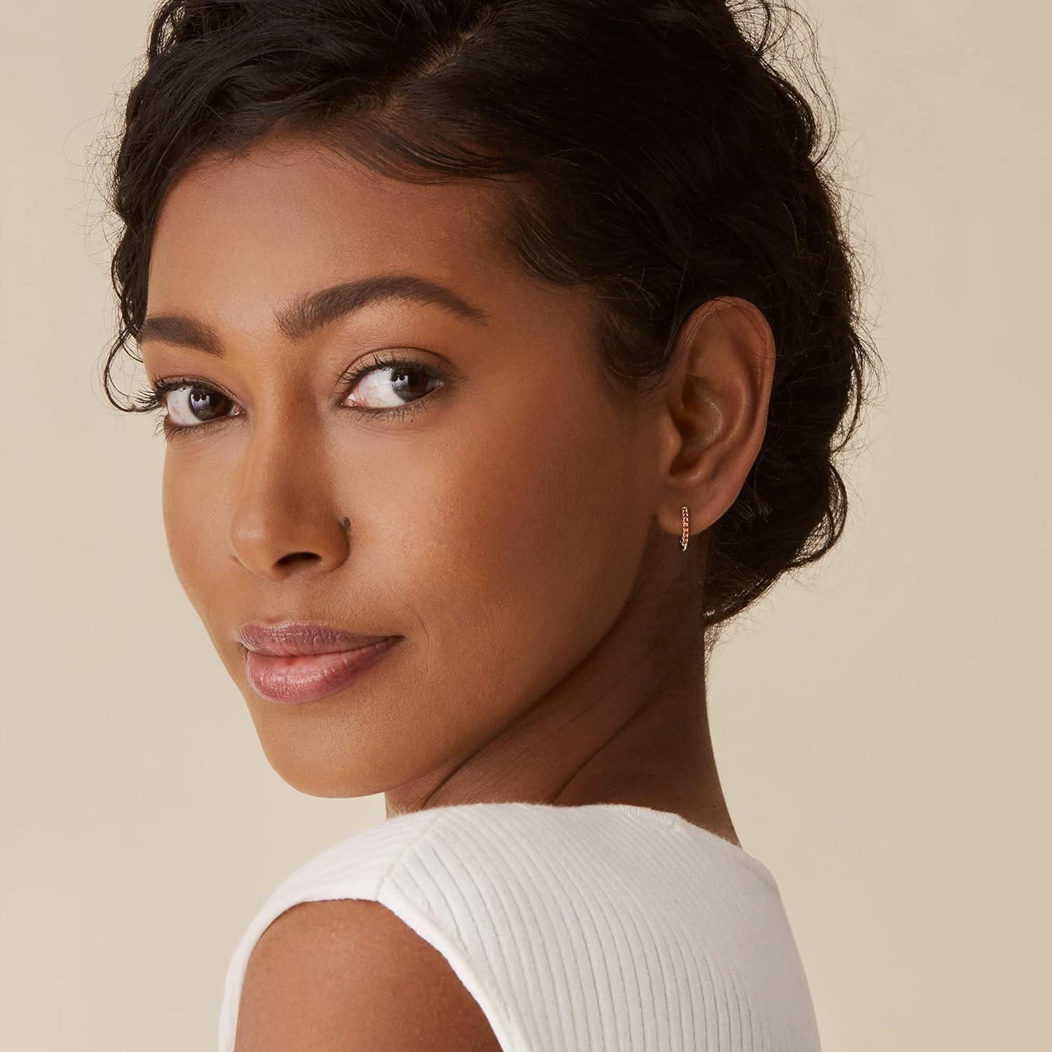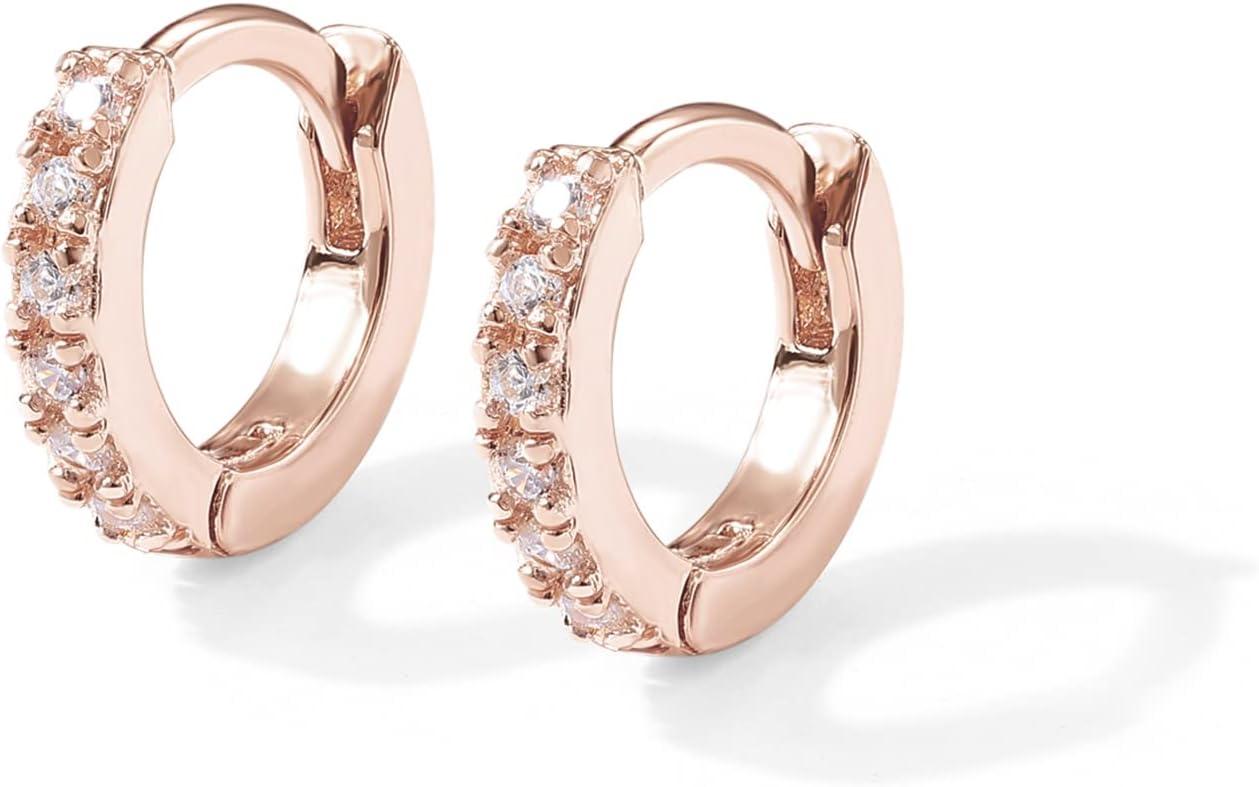 PAVOI 14K Gold Plated 925 Sterling Silver Post Pave Cubic Zirconia Huggie Hoop Earrings for Women(Rose Gold)