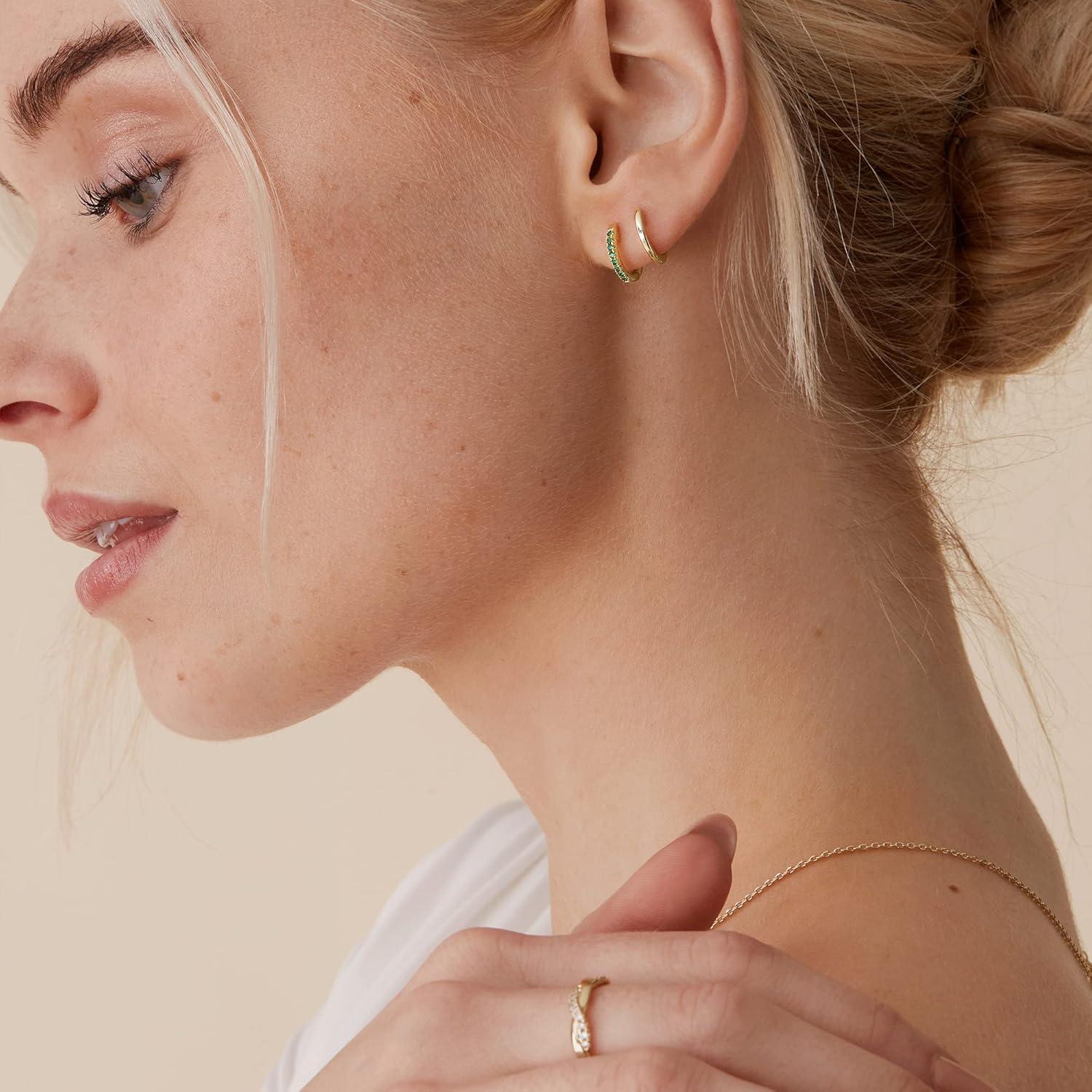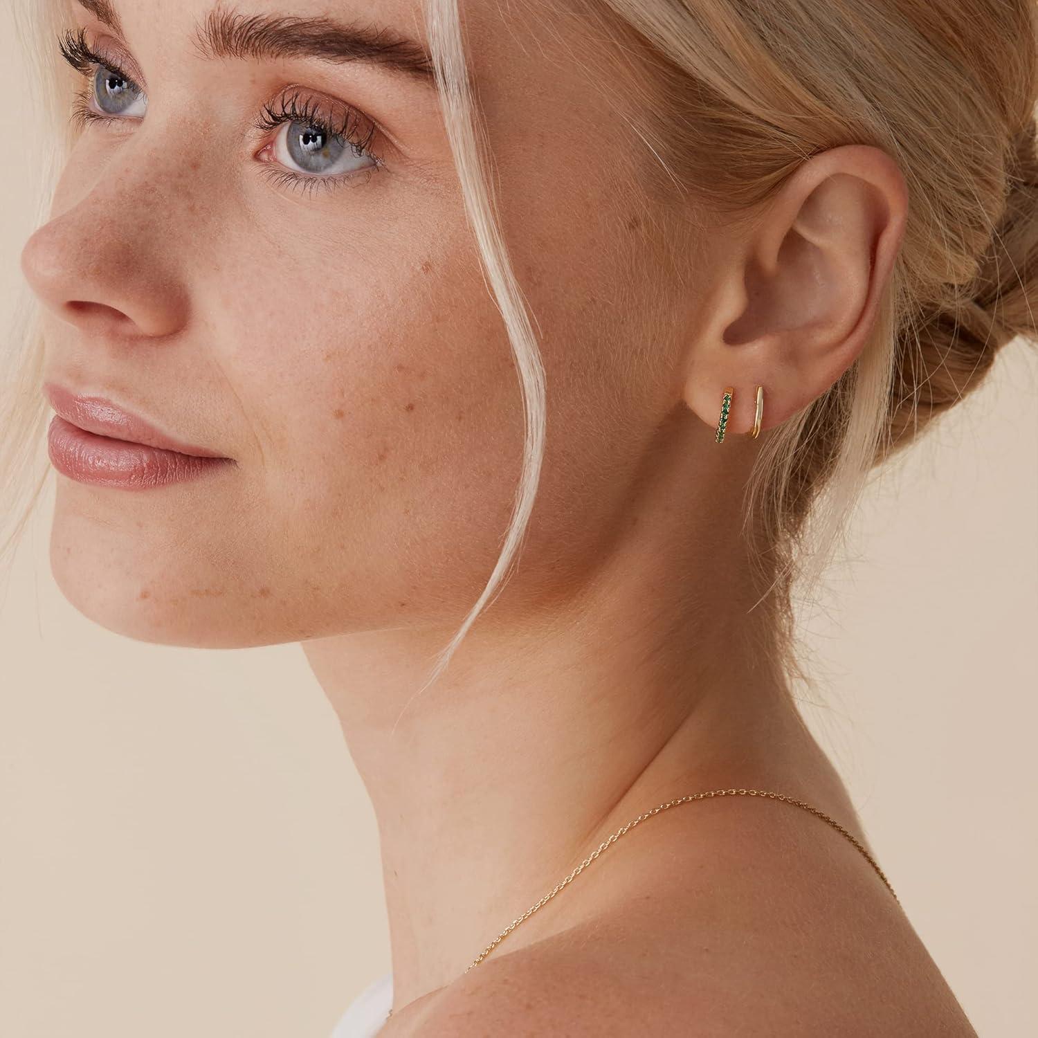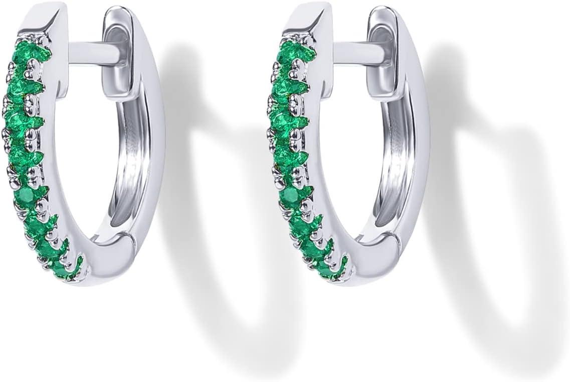 PAVOI 14K Gold Plated 925 Sterling Silver Post Huggies | Cubic Zirconia Huggie Earrings for Women | Green, Garnet, Spinel Blue, Black, Multicolored Stones(Green CZ)
