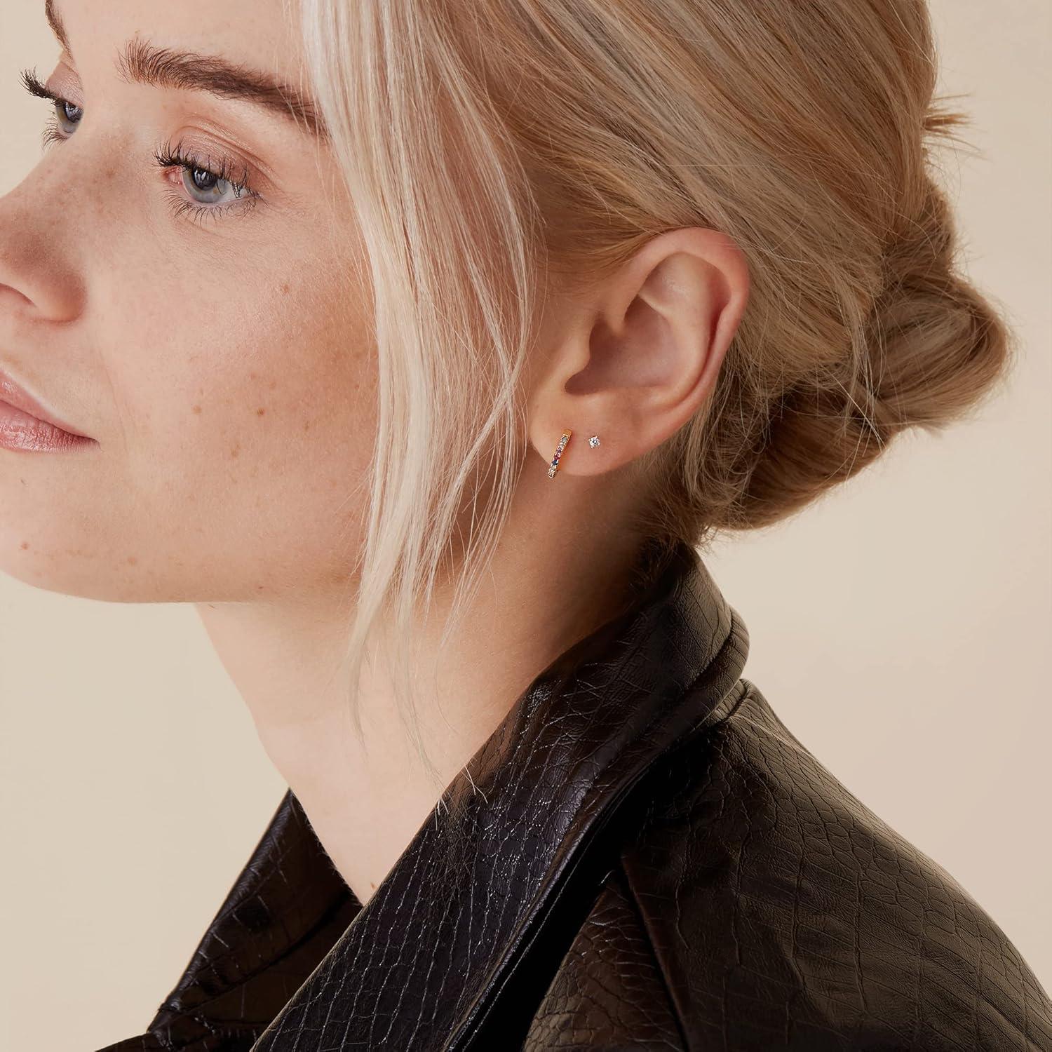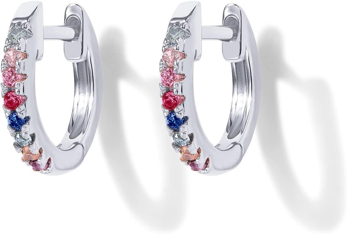 PAVOI 14K Gold Plated 925 Sterling Silver Post Huggies | Cubic Zirconia Huggie Earrings for Women | Green, Garnet, Spinel Blue, Black, Multicolored Stones(Multi Colored)