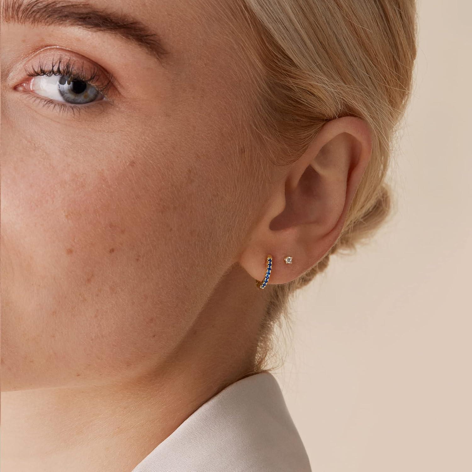 PAVOI 14K Gold Plated 925 Sterling Silver Post Huggies | Cubic Zirconia Huggie Earrings for Women | Green, Garnet, Spinel Blue, Black, Multicolored Stones(Nano Spinel Blue)