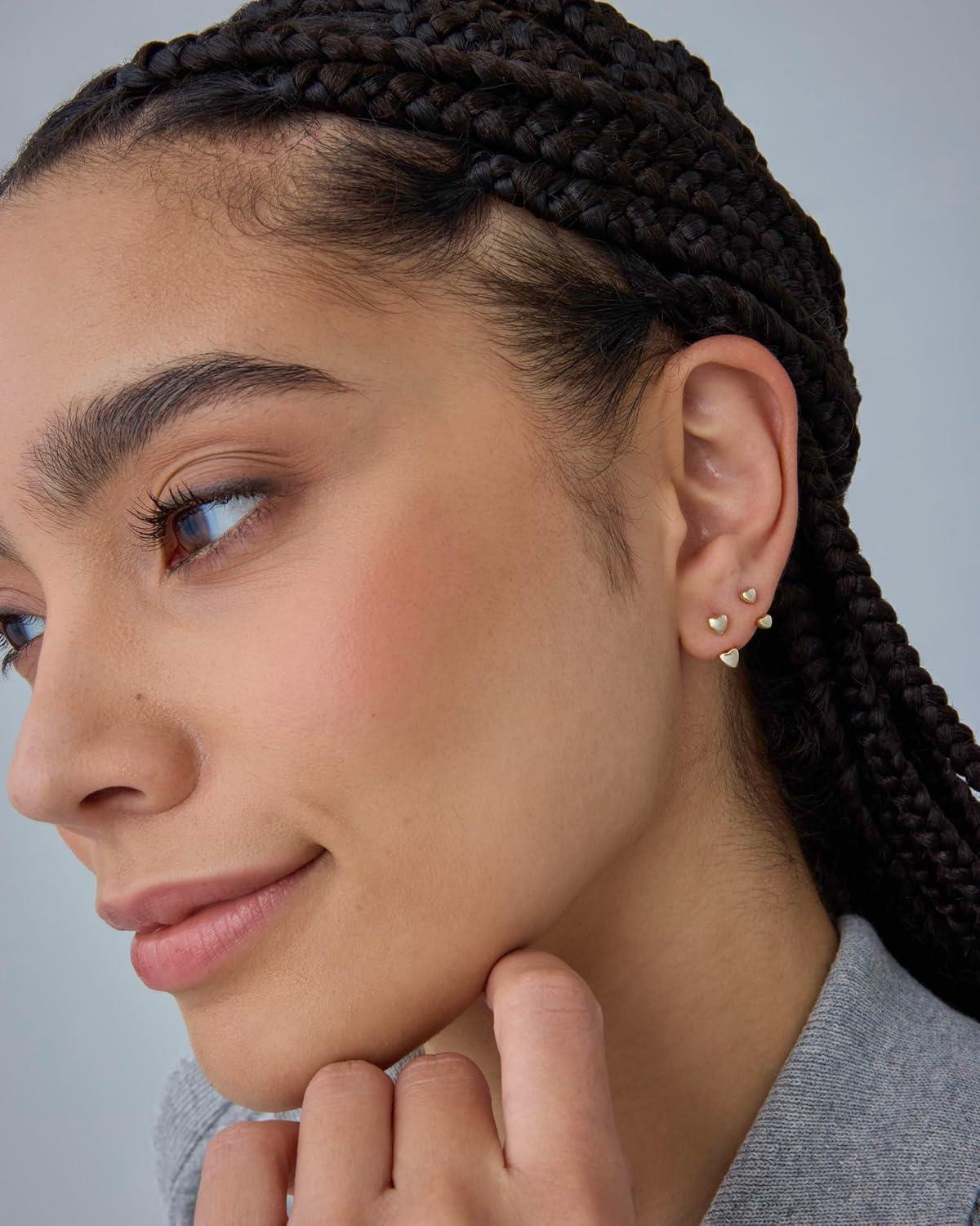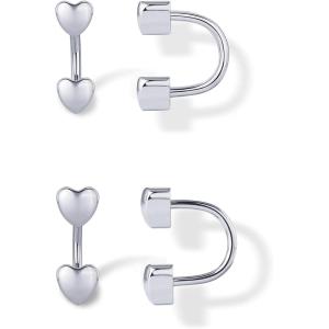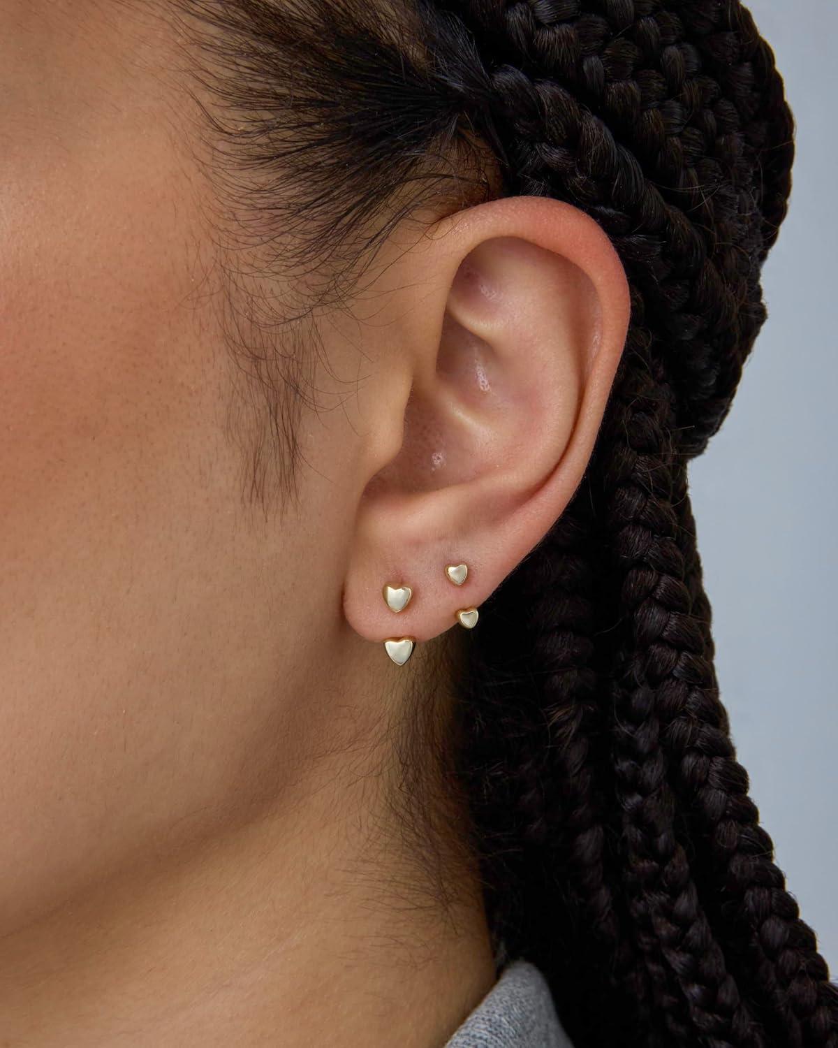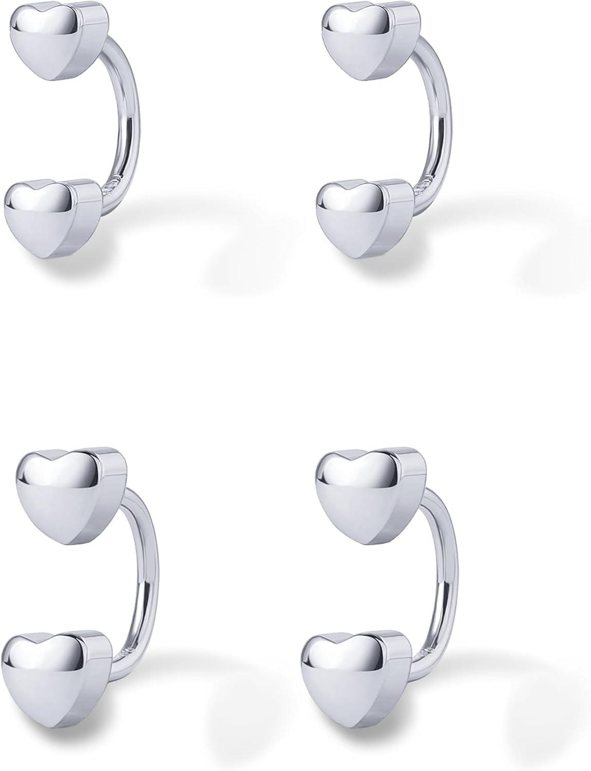 PAVOI 14K Gold Plated 925 Sterling Silver Posts Double Half Huggie Earring Jacket Pack for Women – Gold Statement Loop Hoop Earring Set – Heart Ball Cubic Zirconia Screwback Studs(Heart)