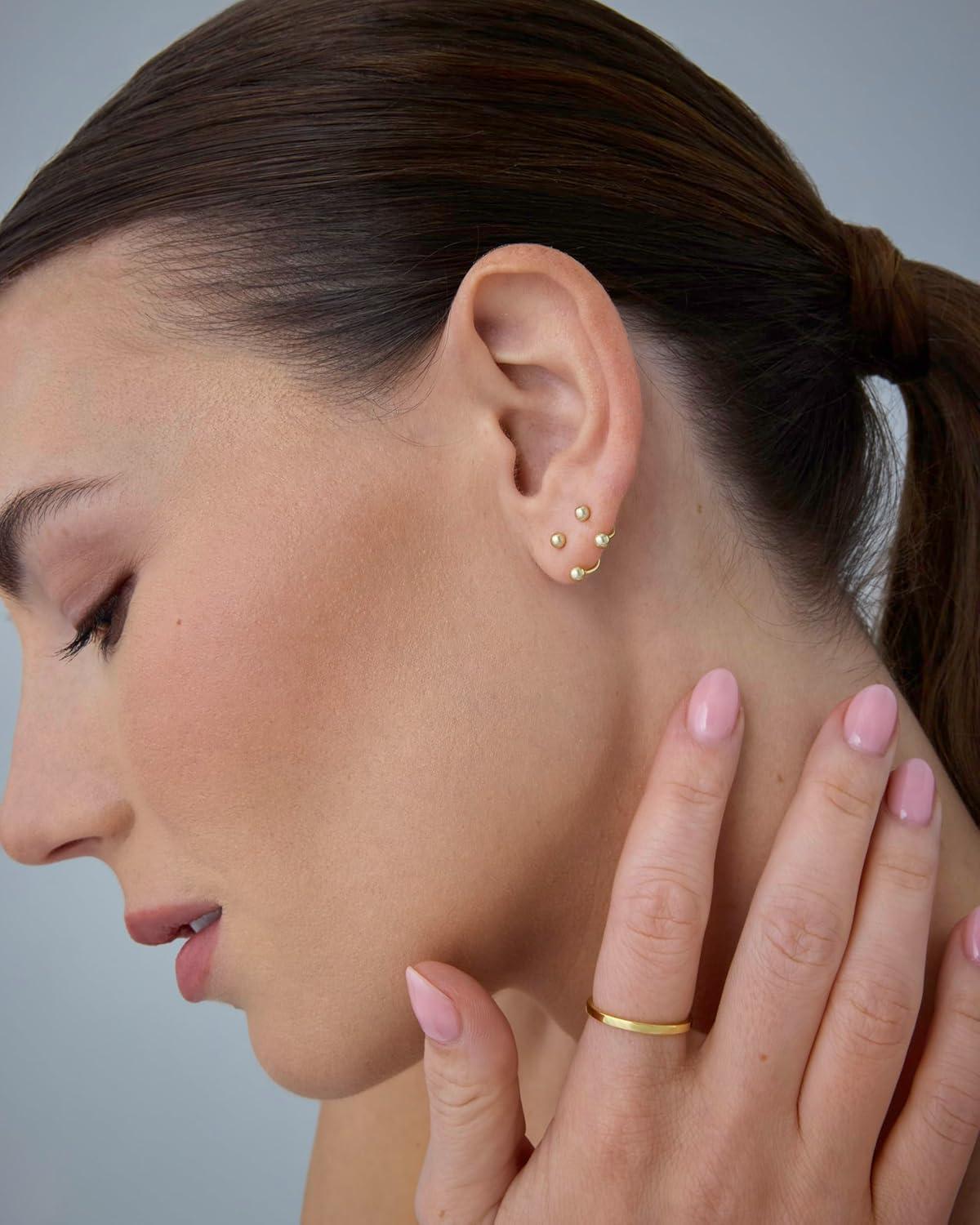 PAVOI 14K Gold Plated 925 Sterling Silver Posts Double Half Huggie Earring Jacket Pack for Women – Gold Statement Loop Hoop Earring Set – Heart Ball Cubic Zirconia Screwback Studs(Ball)