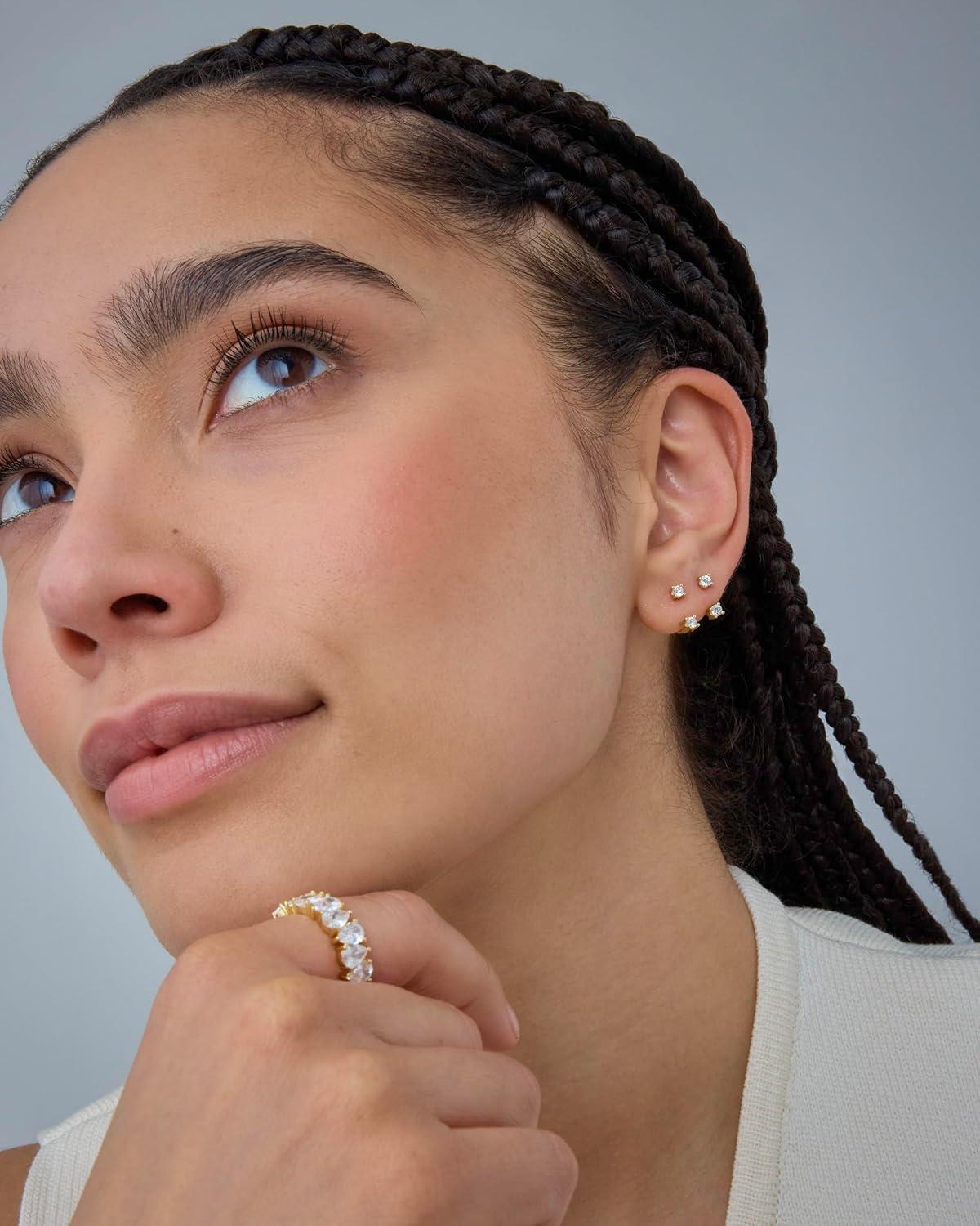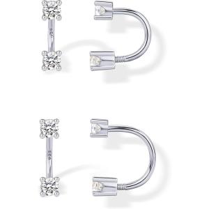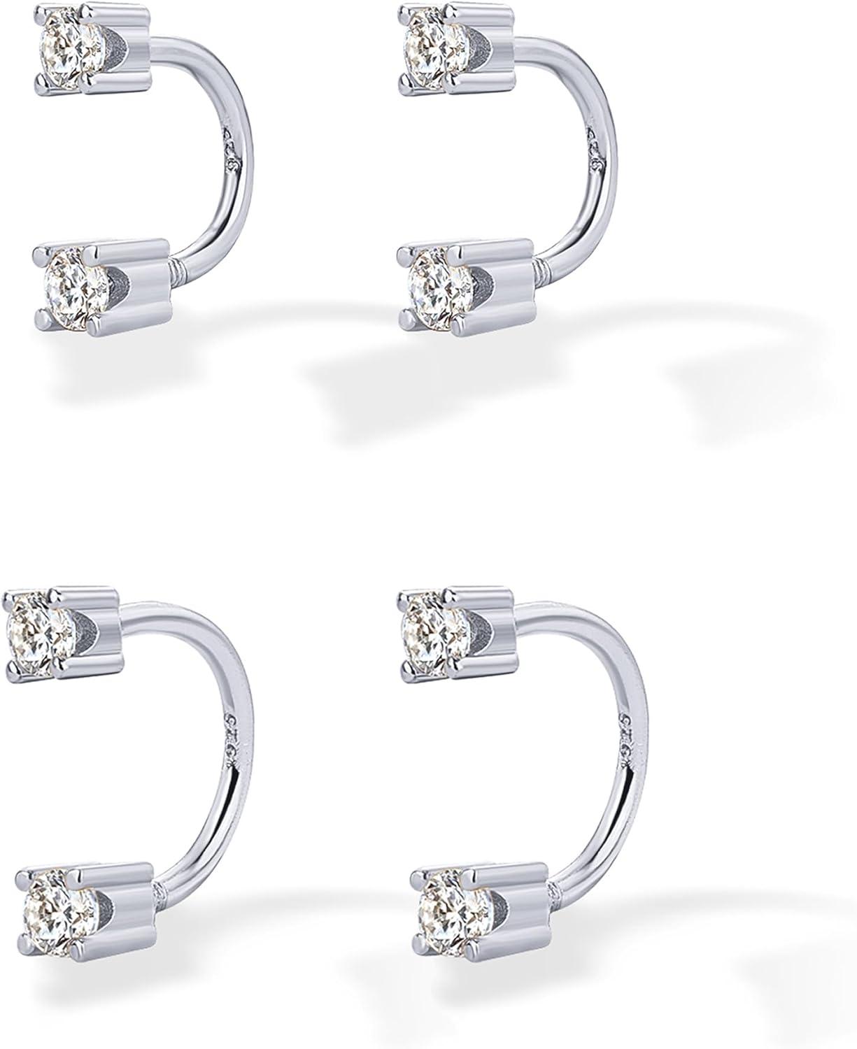 PAVOI 14K Gold Plated 925 Sterling Silver Posts Double Half Huggie Earring Jacket Pack for Women – Gold Statement Loop Hoop Earring Set – Heart Ball Cubic Zirconia Screwback Studs(Cubic Zirconia)