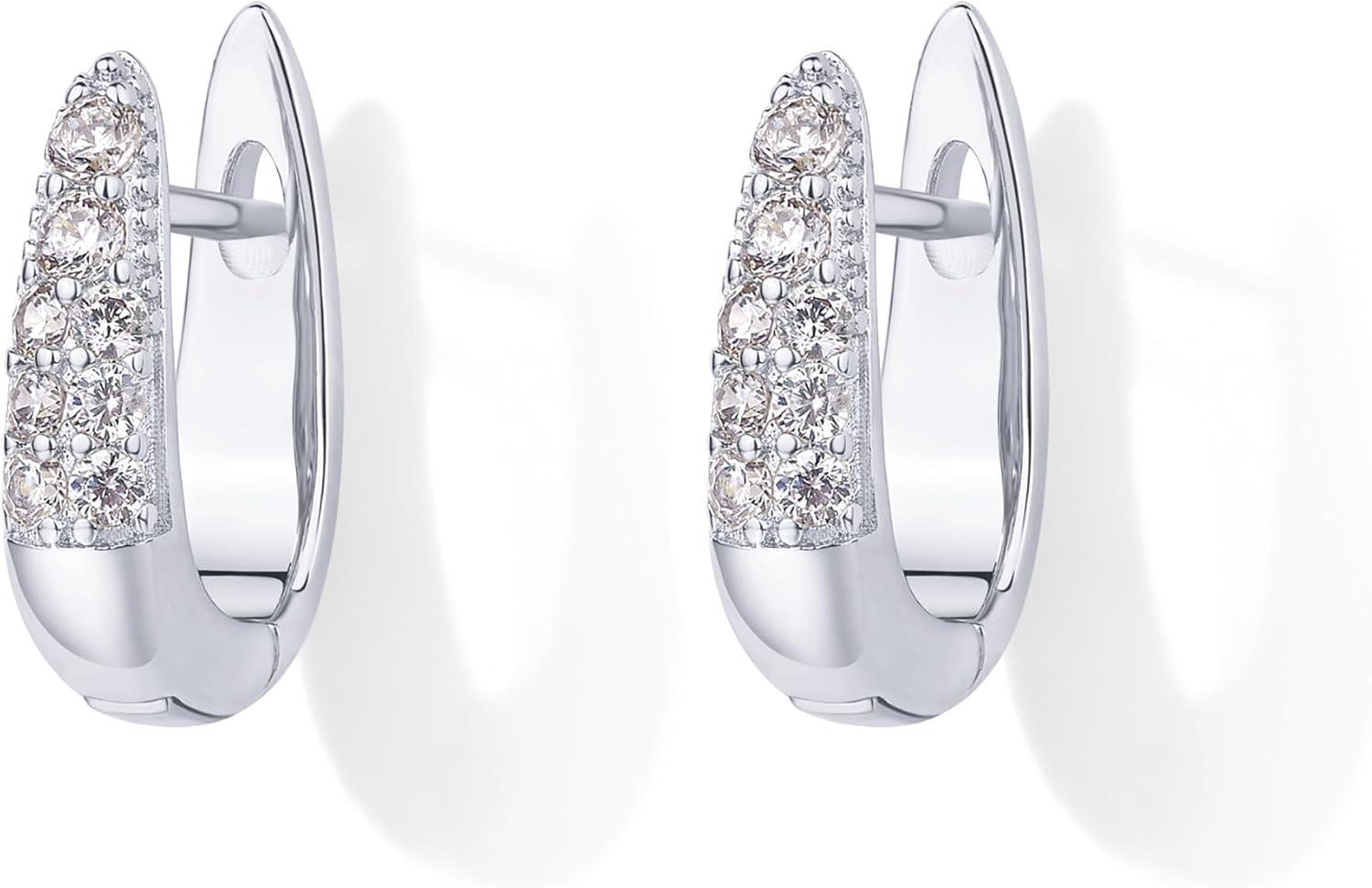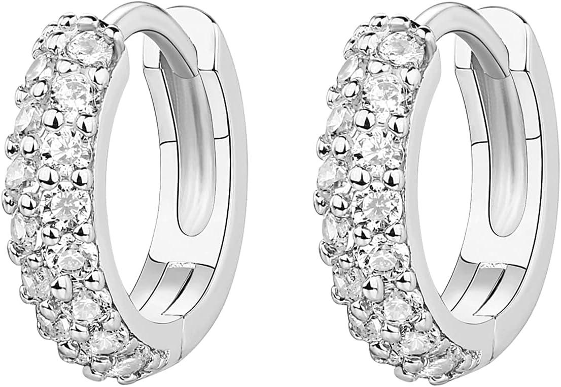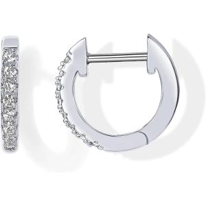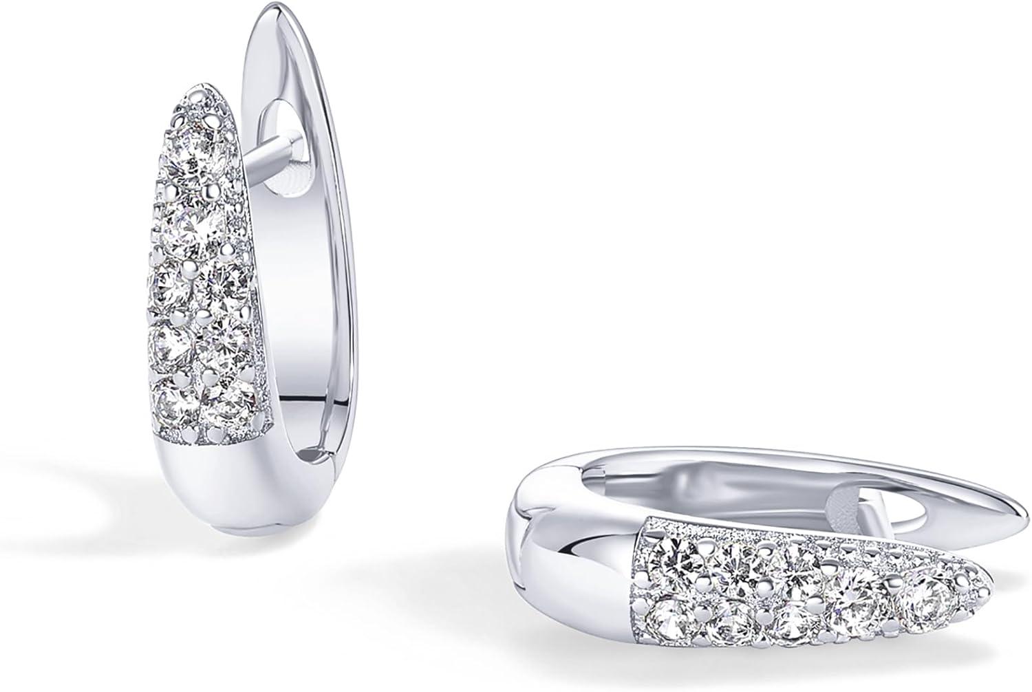 PAVOI 14K Gold Plated 925 Sterling Silver Post Pave Cubic Zirconia Huggie Hoop Earrings for Women(White Gold)