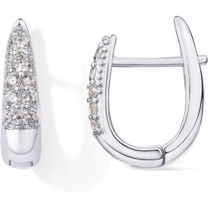 PAVOI 18K Gold Plated 925 Sterling Silver Posts Cubic Zirconia U Shaped Hoop Earrings | Hypoallergenic CZ Huggie Earrings for Women(White Gold)