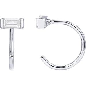 PAVOI 14K Gold Plated Cubic Zirconia Cuff Earrings Huggie Stud(White Gold)