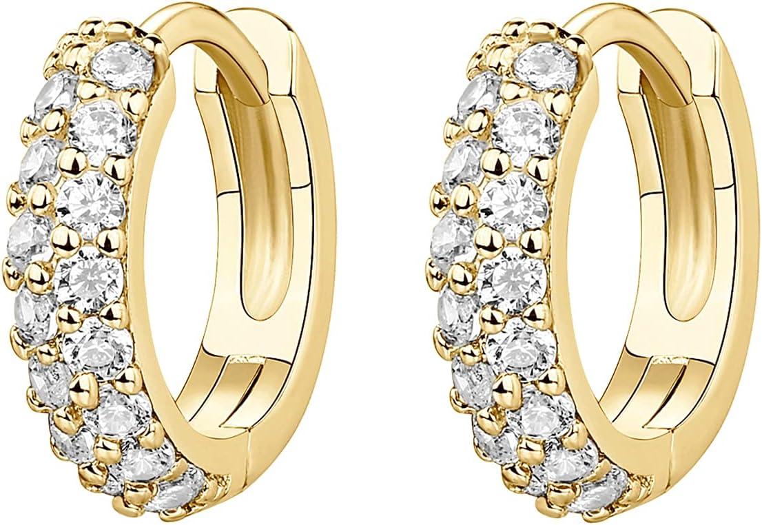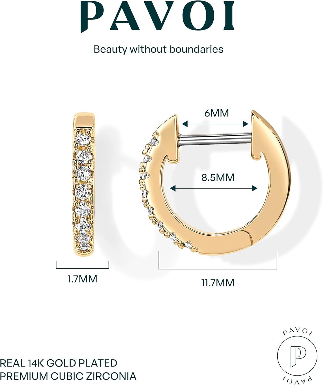 PAVOI 14K Gold Plated 925 Sterling Silver Posts Cubic Zirconia Mini Huggie Earrings for Women | Tiny Cartilage Helix Huggie Hoop Earrings(Cubic Zirconia)