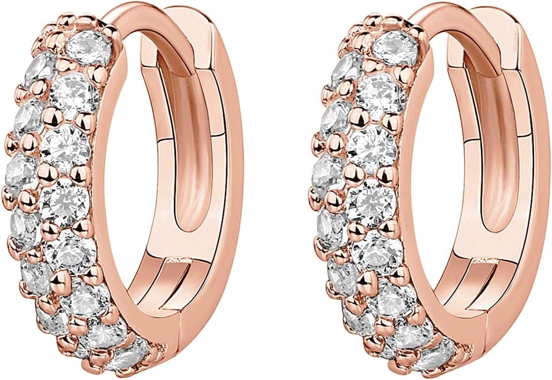 PAVOI 14K Gold Plated 925 Sterling Silver Post Pave Cubic Zirconia Huggie Hoop Earrings for Women(Rose Gold)