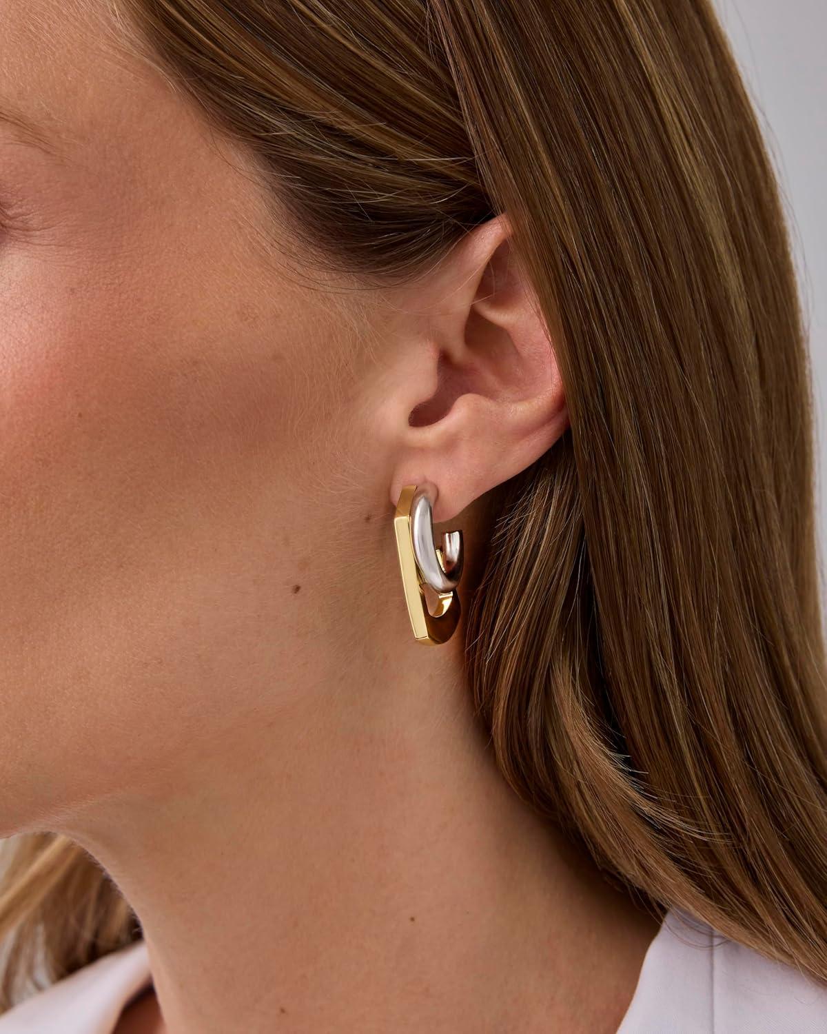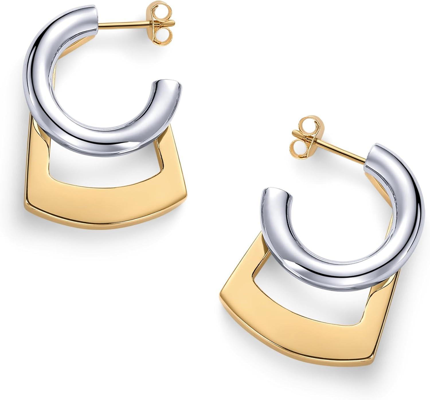 PAVOI 14K Gold Plated and Rhodium Plated Two Tone Multihoop Double Hoop Geometric Earrings for Women | Mixed Metals Huggie Multi Earring Statement Pair(Geometric)
