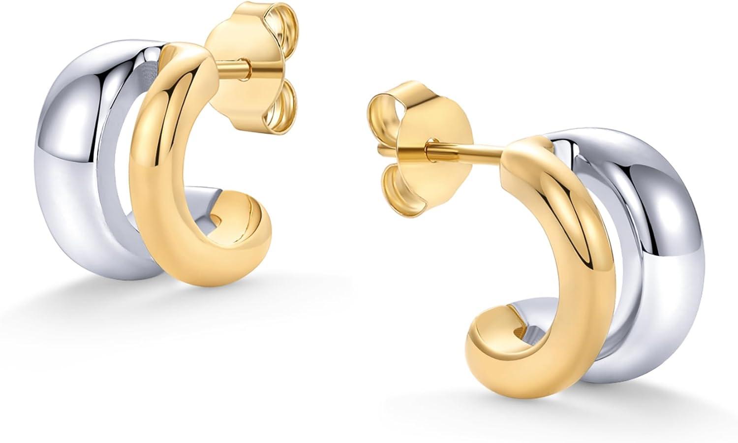 PAVOI 14K Gold Plated and Rhodium Plated Two Tone Multihoop Double Hoop Geometric Earrings for Women | Mixed Metals Huggie Multi Earring Statement Pair(Double Hoop)